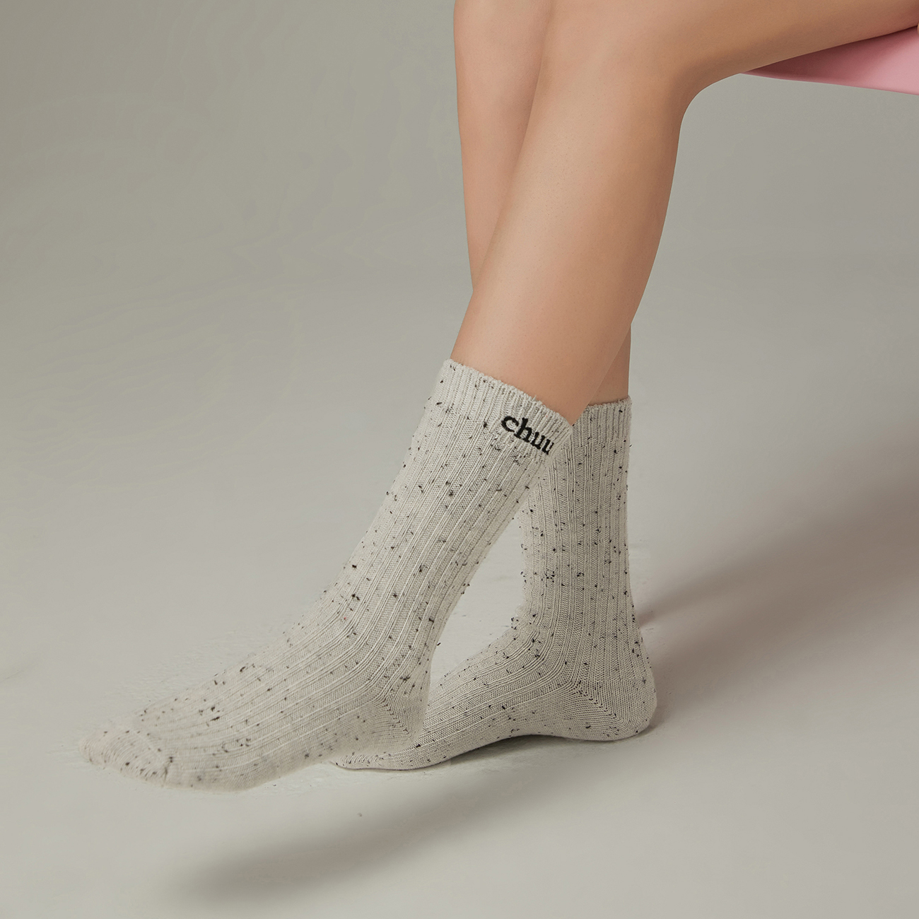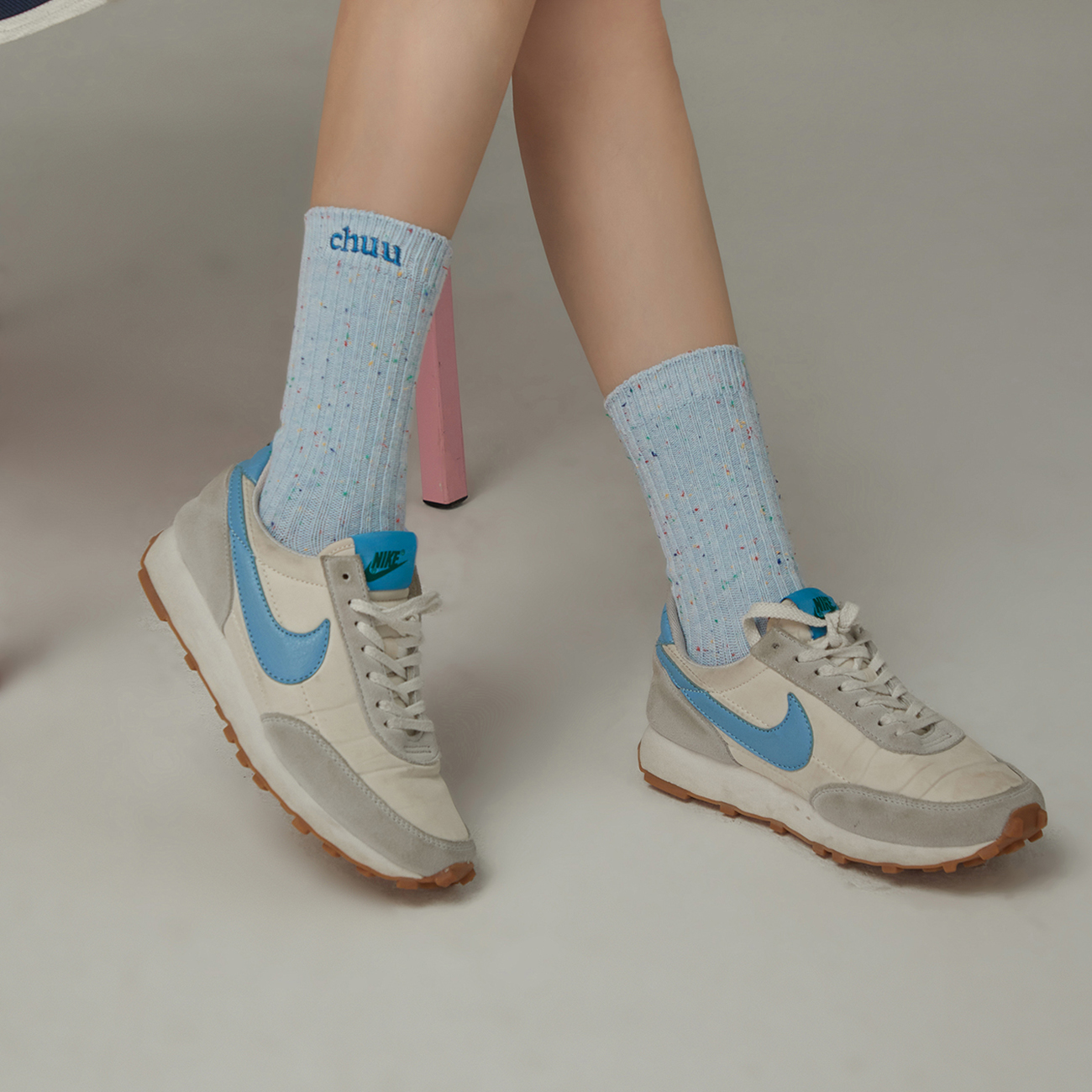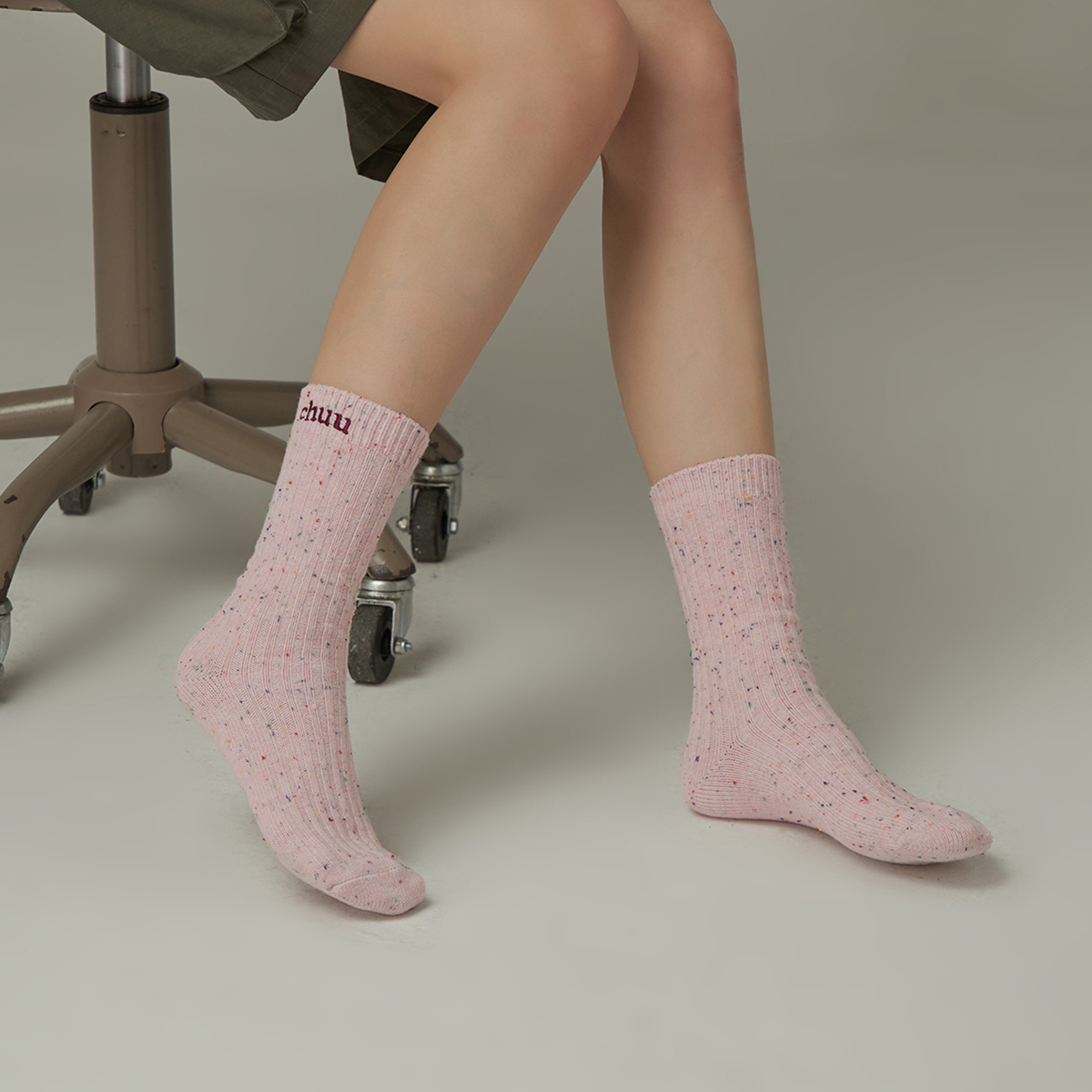 CHUU Alphabet Embroidered Knit Basket Socks Lady 2023 Fall New Color Wave Dot Tide Socks 100 Lap Socks-Taobao