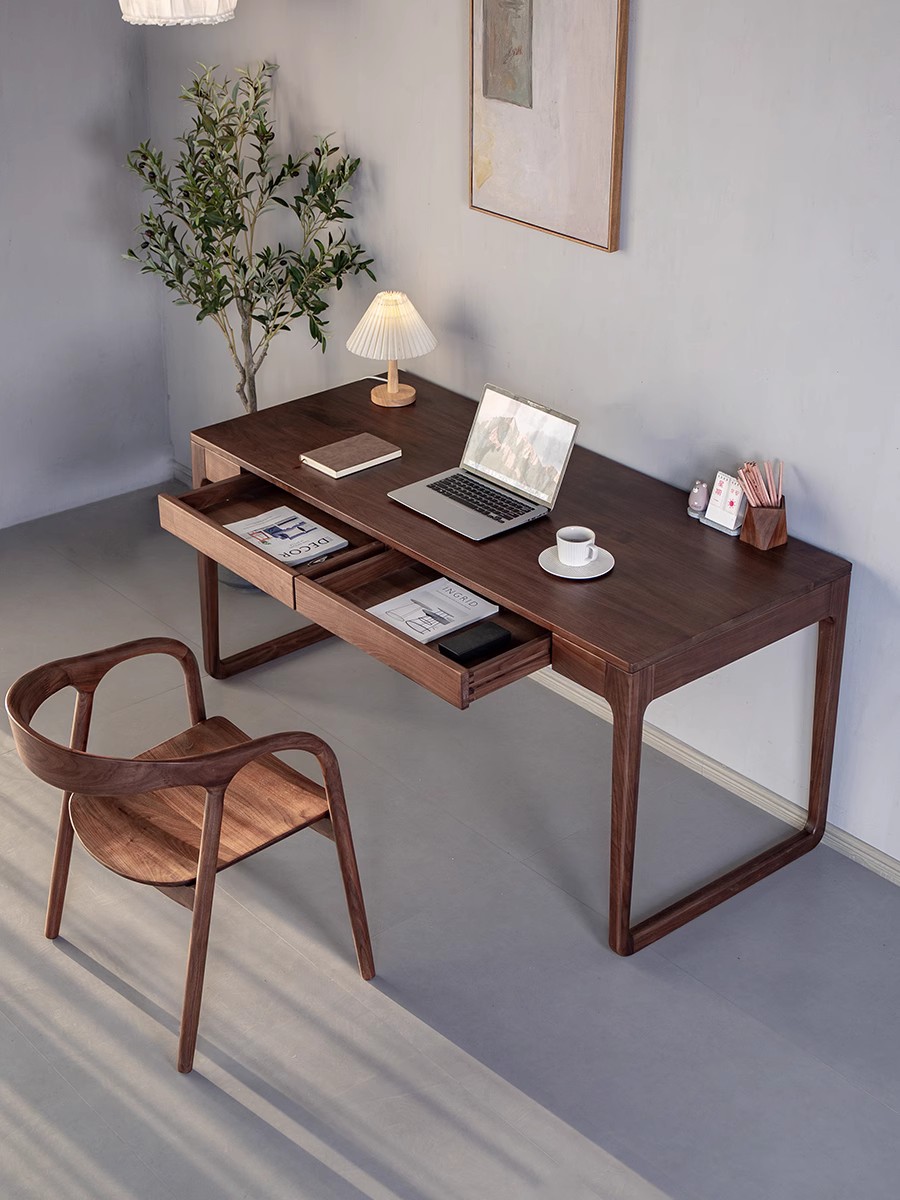 Customize North American European Day style minimalist dark walnut wood desk full solid wood log light extravagant writing desk Cherry Wood Desk-Taobao