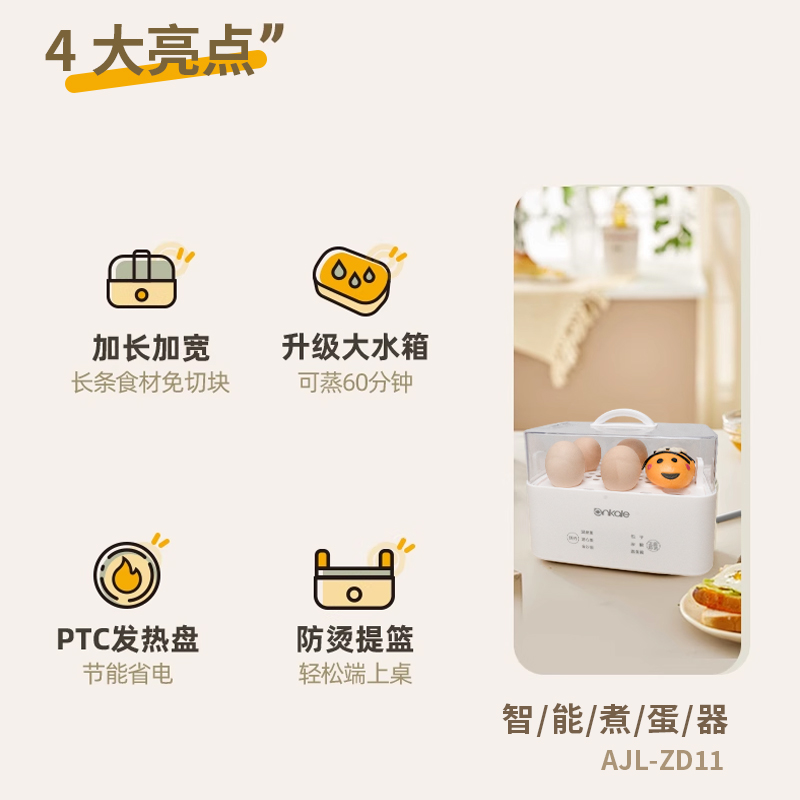 ankale Boiled Egg machine Home Small automatic power-off steamer multifunction appointment new cooking egg theorizer-Taobao