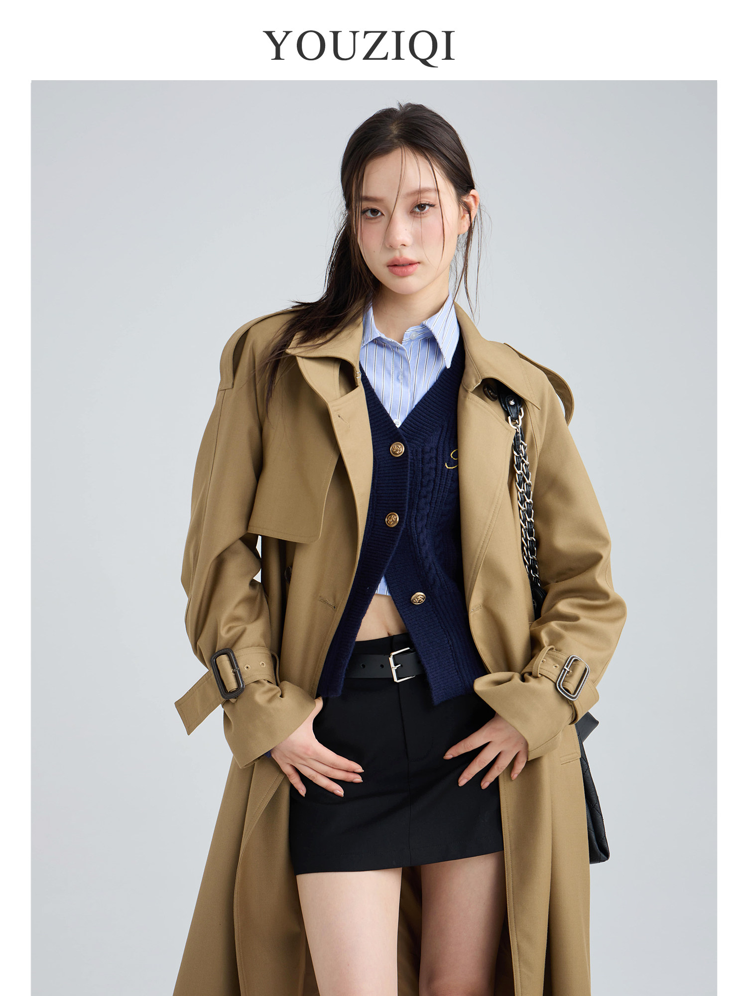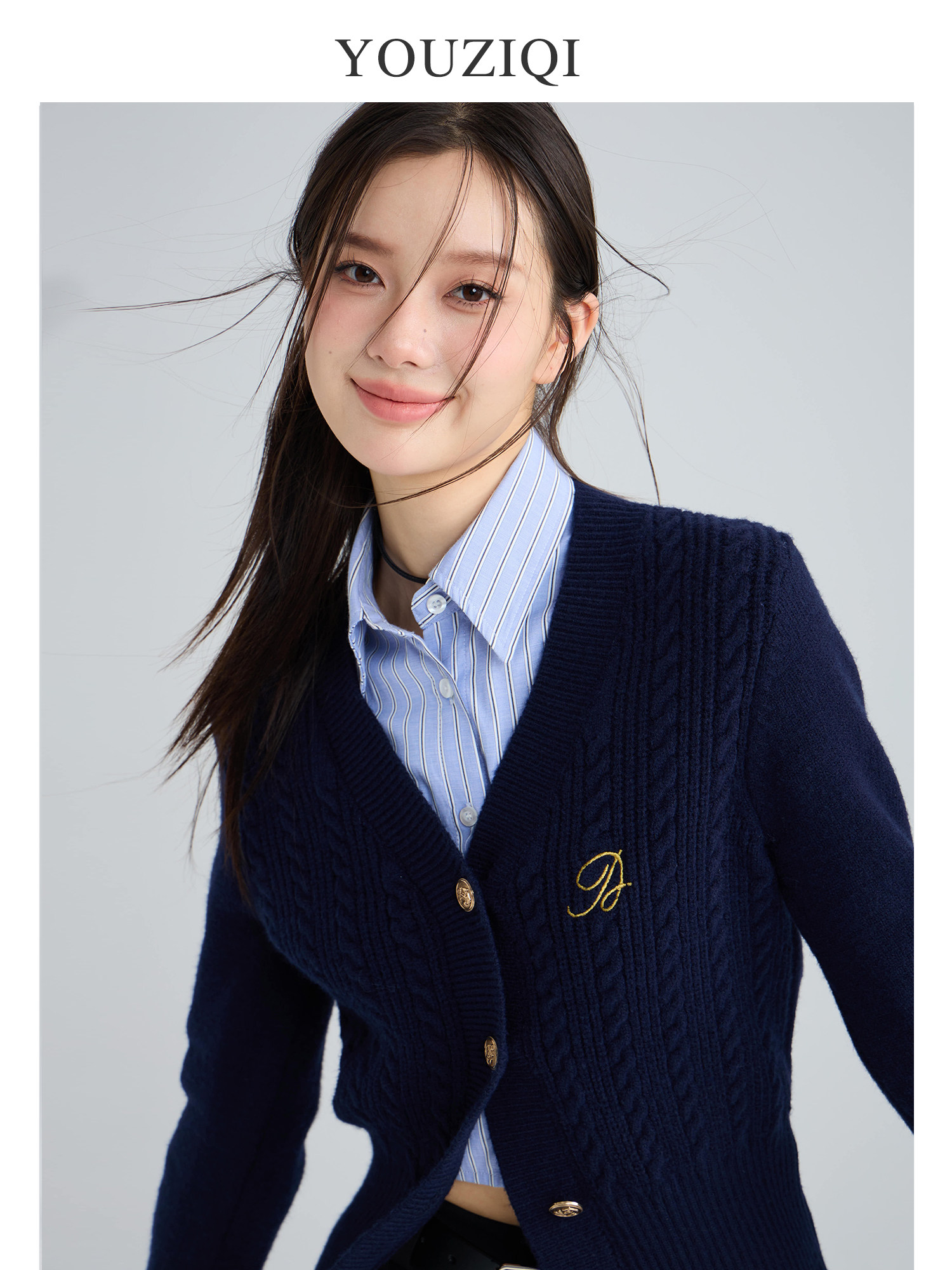 YOUZIQI Yuziqi Berlin College Dark Blue Knitted Cardigan Women's Design Knitted Top Sweater Jacket