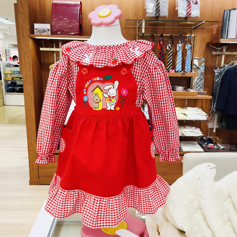 miki ma fugui rabbit apple princess braces skirt ~ day tying girl full cotton cartoon butterfly knot splicing one-piece dress-Taobao
