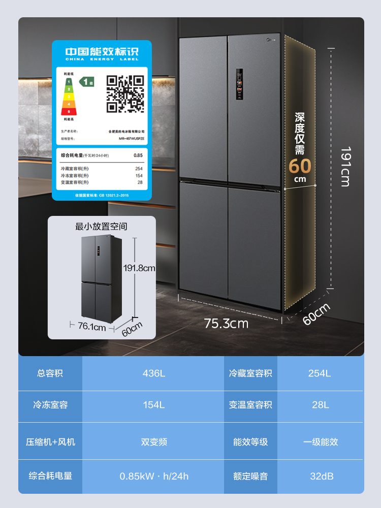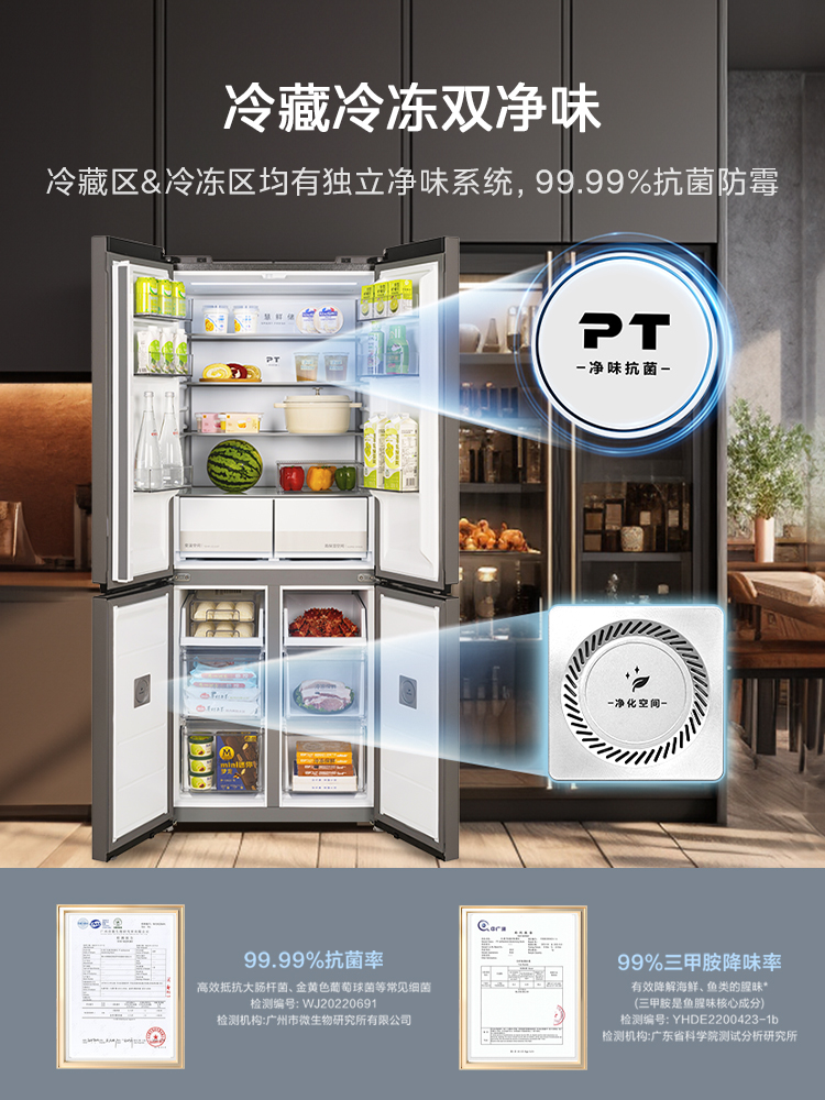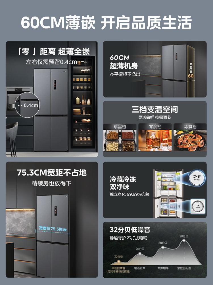 (New Product) Beauty 457 Cross Open Double Open Four Doors Slim 0 Embedded Large Capacity Home Air-cooled Refrigerator-Taobao