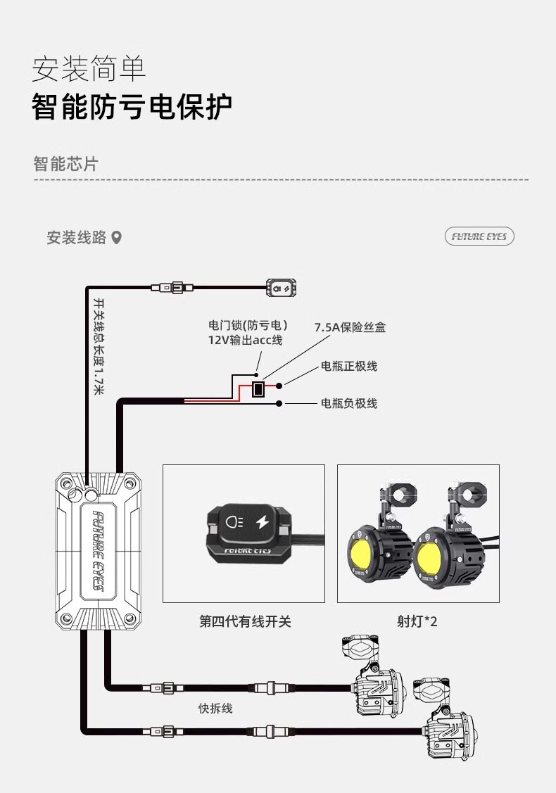 Future Eye F20P Motorcycle Spotlight Led Headlights Lens turn lights superbright bright light external spotlights pave-Taobao