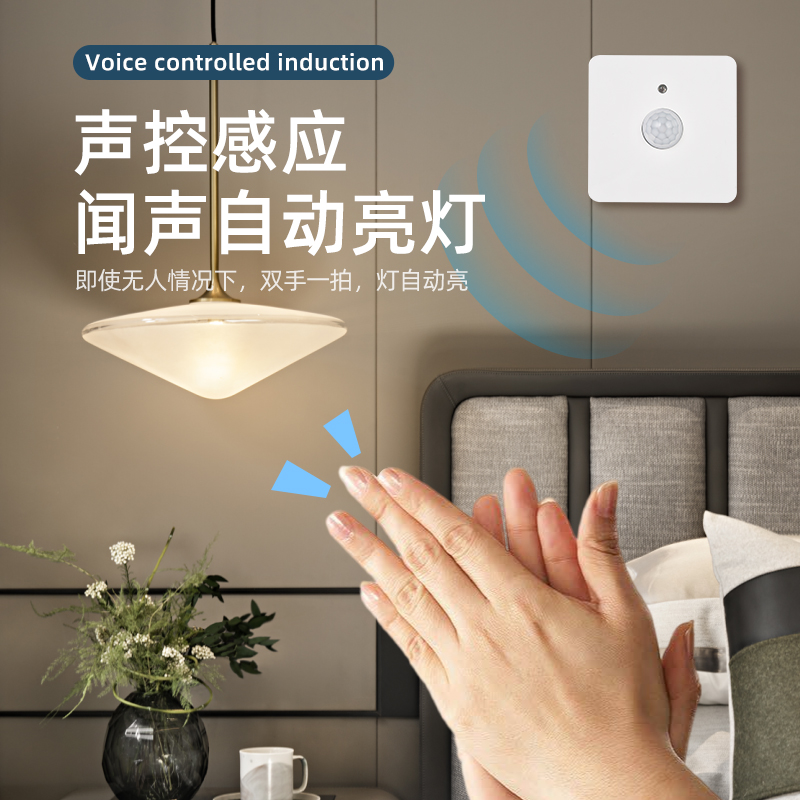 Type 86 sound control plus human induction switch intelligent voice control LED light floor time-lapse infrared sensor-Taobao