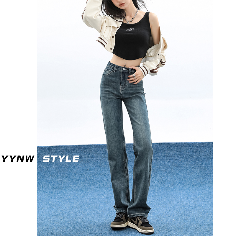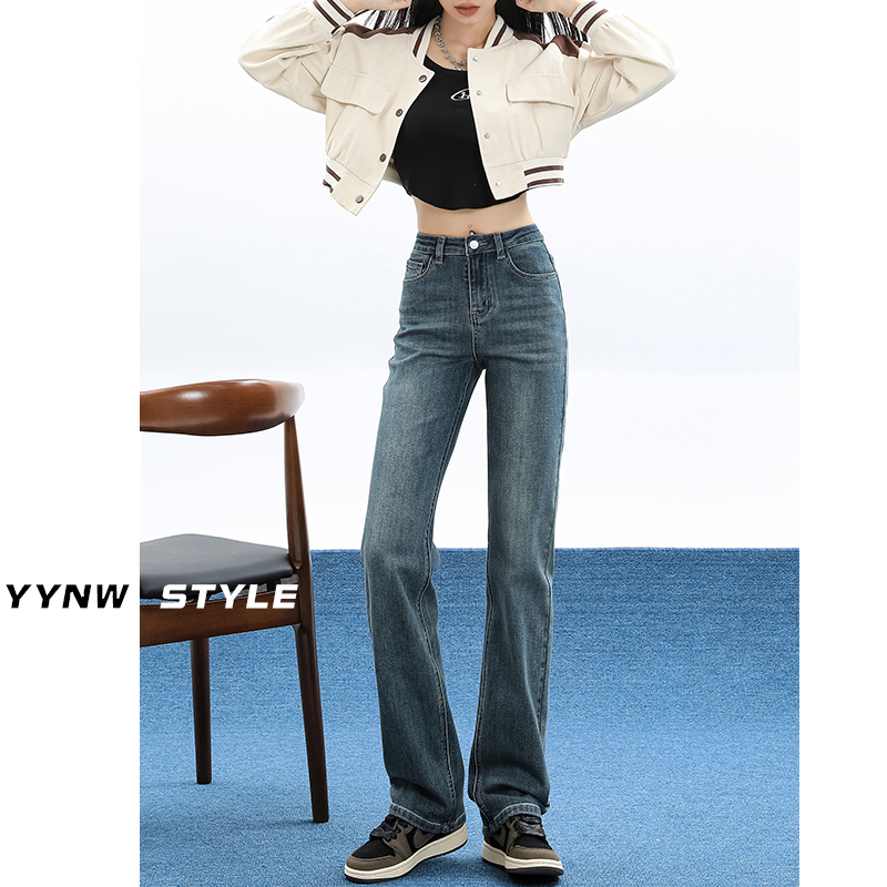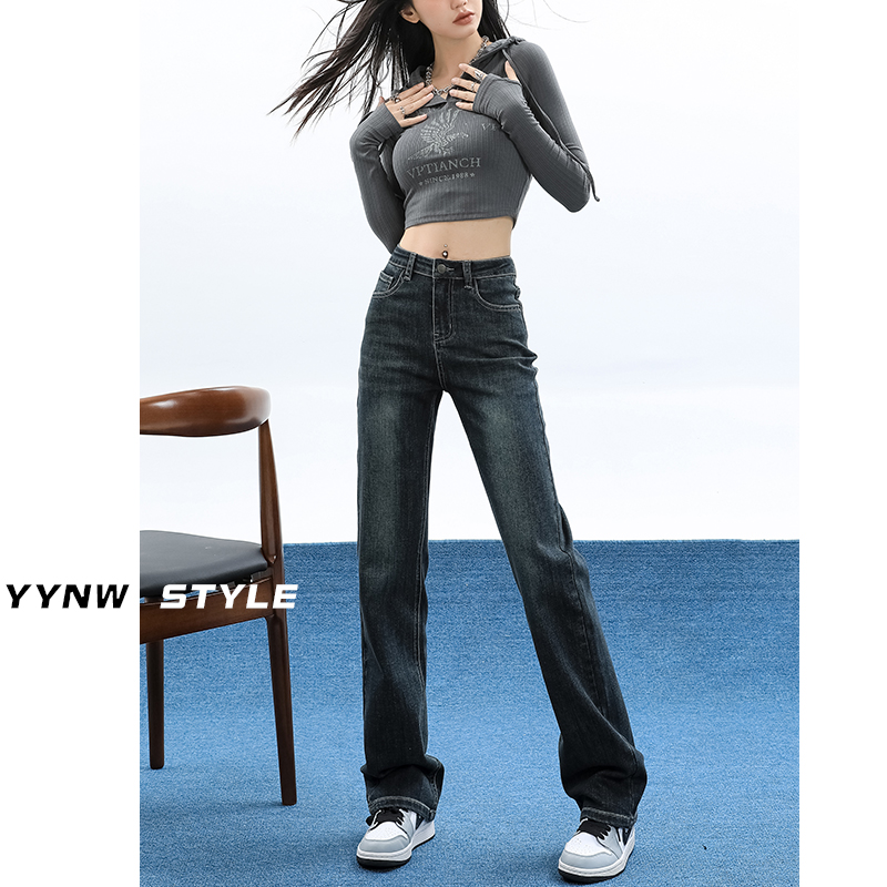 High waist narrow version straight cylinder Jeans Woman 2023 Early autumn new display slim smoke tube pants High Towering Pants-Taobao