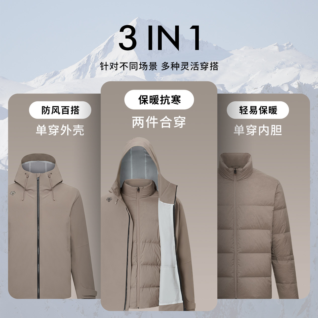 DESCENTE di Sante Men's sports anti-splash water three-in-one down inside the jacket Two sets of new winter-Taobao
