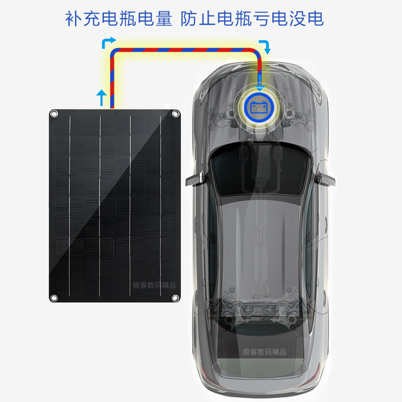 On-board battery Anti-loss electric car Solar charging plate Photovoltaic storage battery complementary electric 12V universal flexible-Taobao