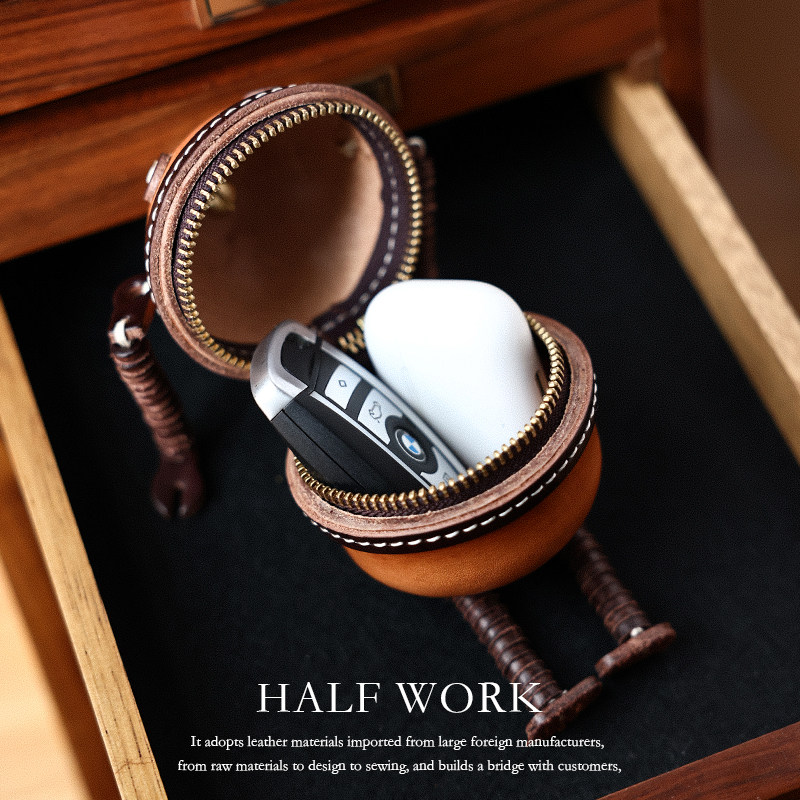HALFWORK ROBOT KEY Plant Tanning Cow Leather Crash Color Retro Genuine Leather Car Key Bag Headphone Bag Handmade-Taobao