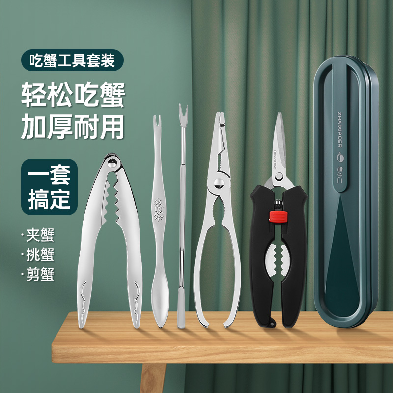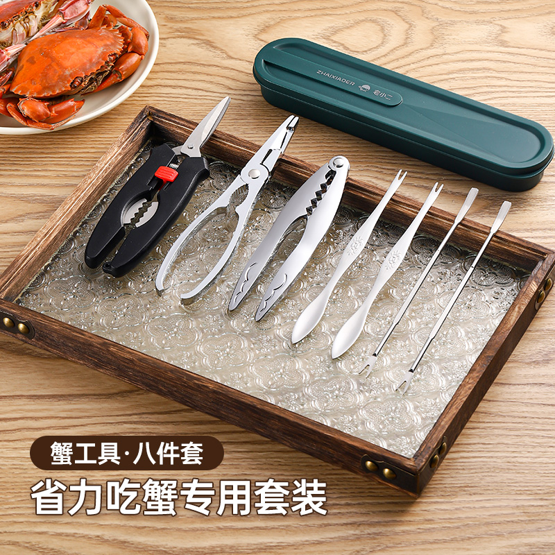 Eating Crab Suit Peeling Crab Divine Instrumental Crab Eight Pieces Kit Detached Hairy Crab Special Crab Needle Crab Pincer Scissors Clip 2386-Taobao