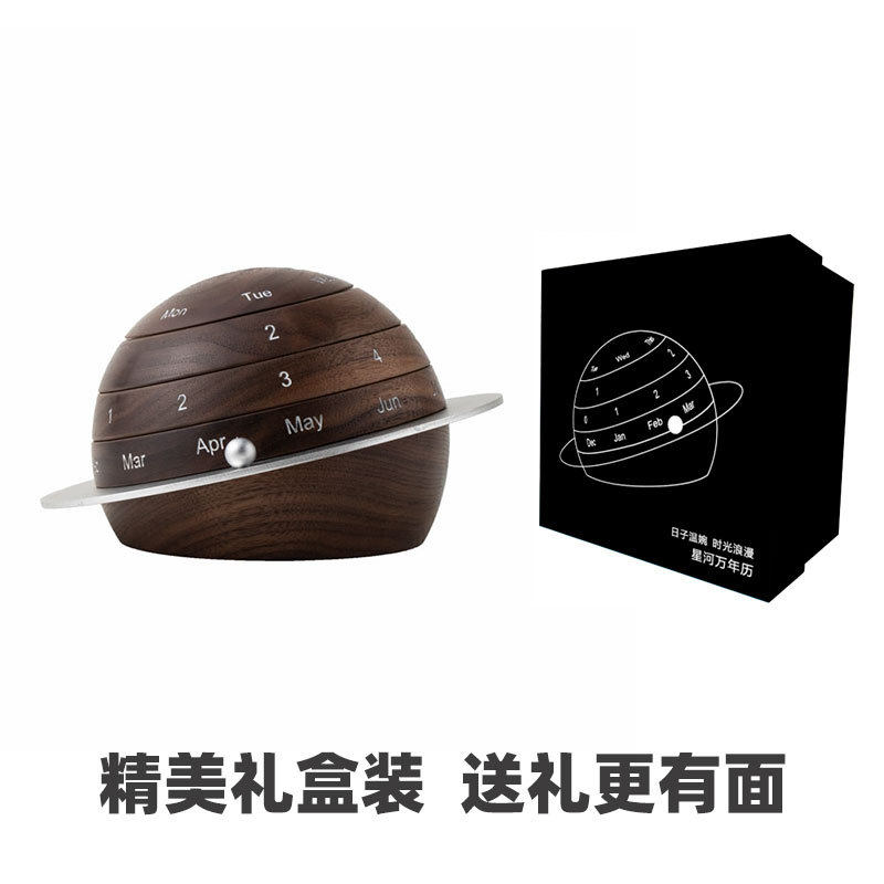 Creative Black Walnuts Solid Wood Planet Calendar Desktop Swing Piece Birthday Graduation Gift Pint Teacher Woody Perpetual Calendar-Taobao