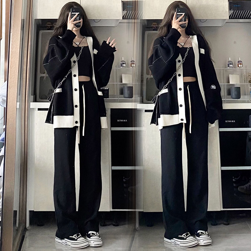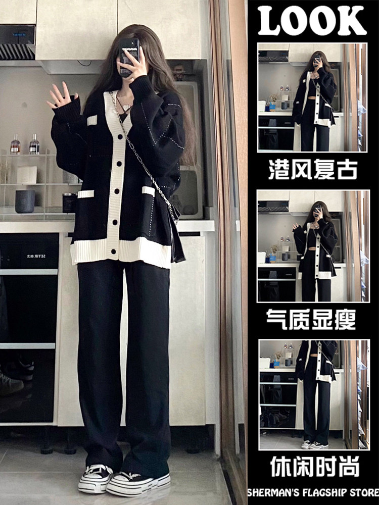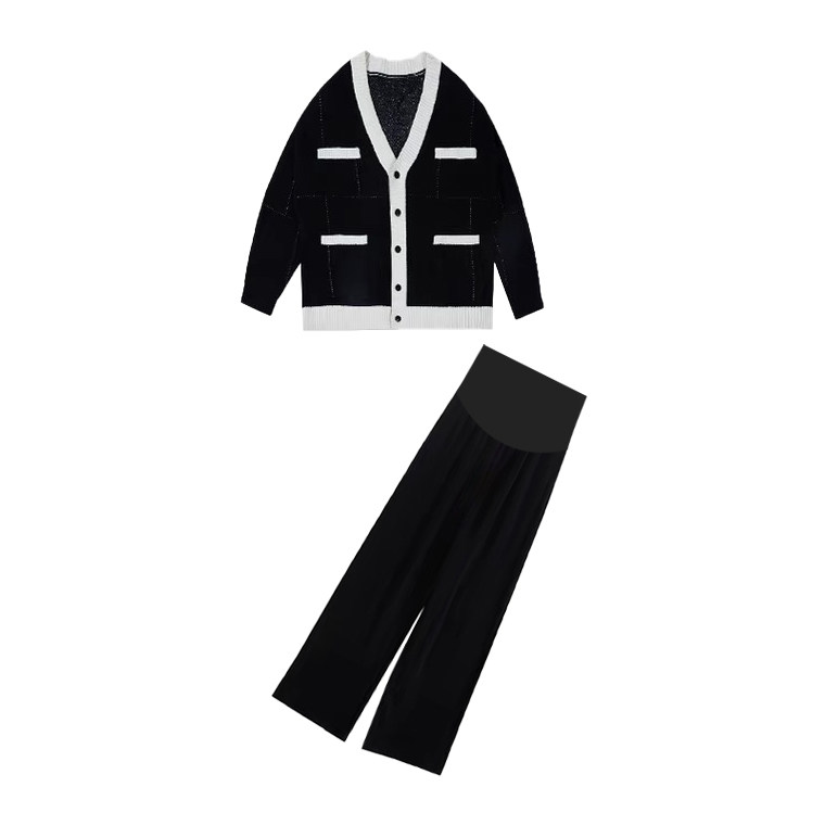 Two sets of casual sweaters jacket long sleeves knitted blouse for pregnant women with wide leg pants outside wearing-Taobao