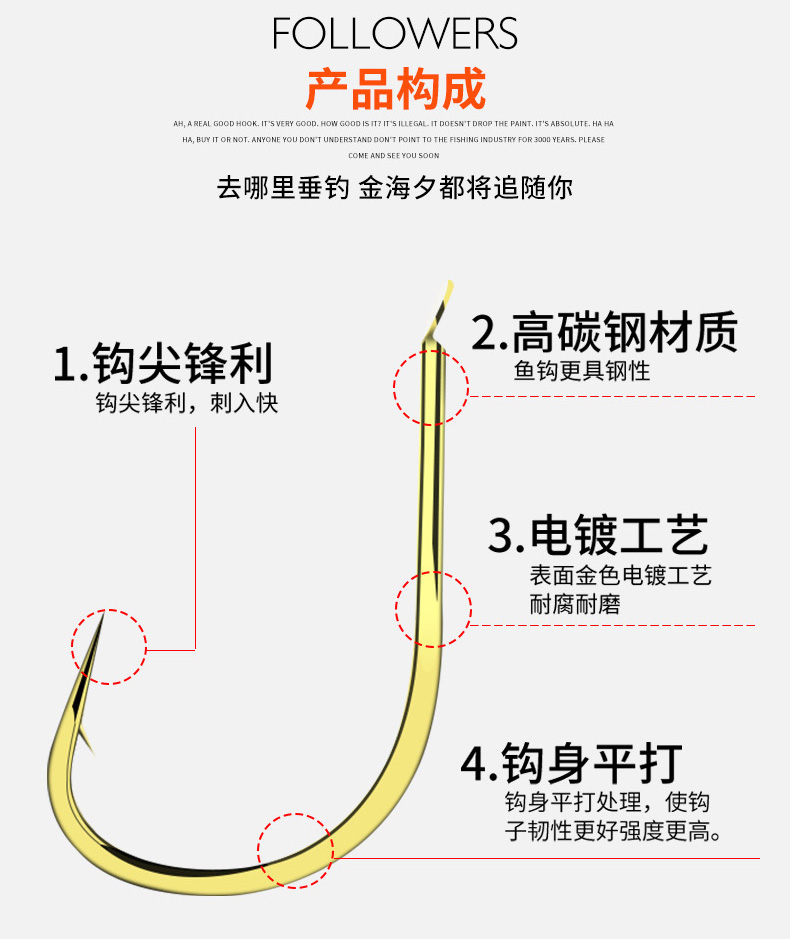 Gold-free Sea New Year's Eve fish hook with fine strips Crochet Fishing Sea Sunset stream with barb carp Carp Hook-Taobao