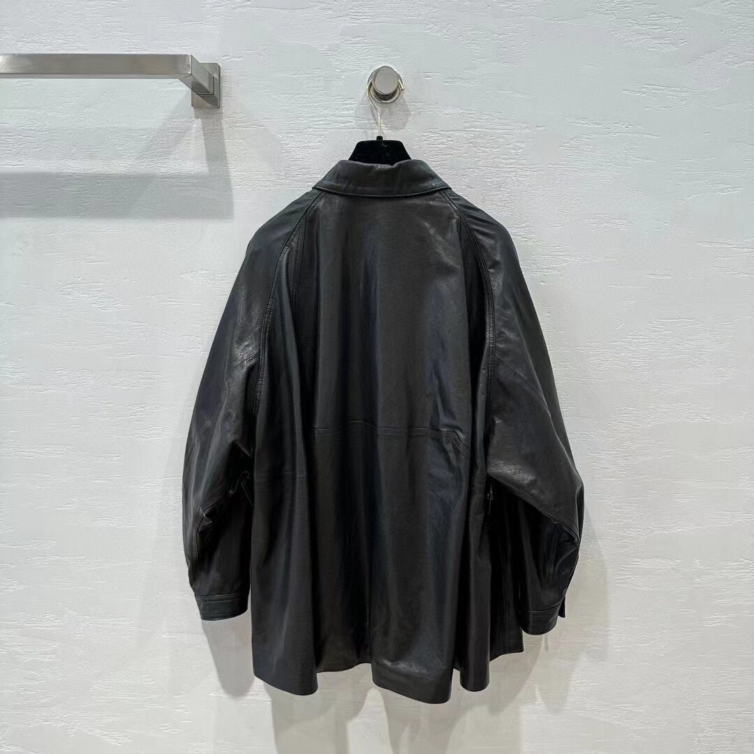 Full-planted tannic leather shirt woman 2023 new sheep leather loose large code wide version long sleeves large bag windcoat jacket-Taobao