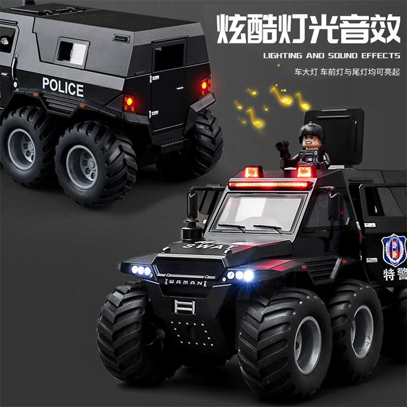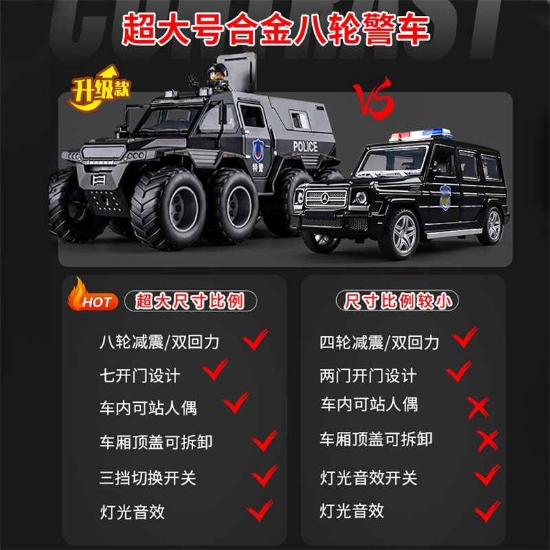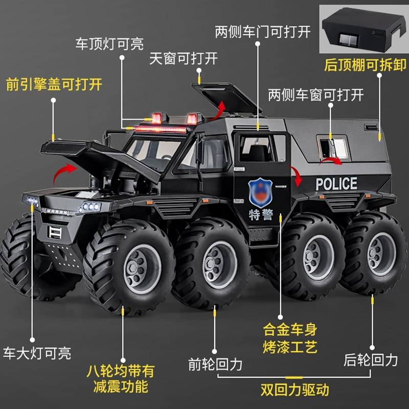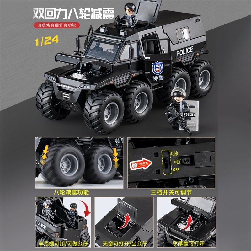 Conquerors ● shaman eight-wheeled off-road caravan (supersize alloy car sound) conqueror □ The shaman eight-wheeled off-road vehicle (supersize alloy car sound) sends 3 random special police paparazzi black special police vehicles (large