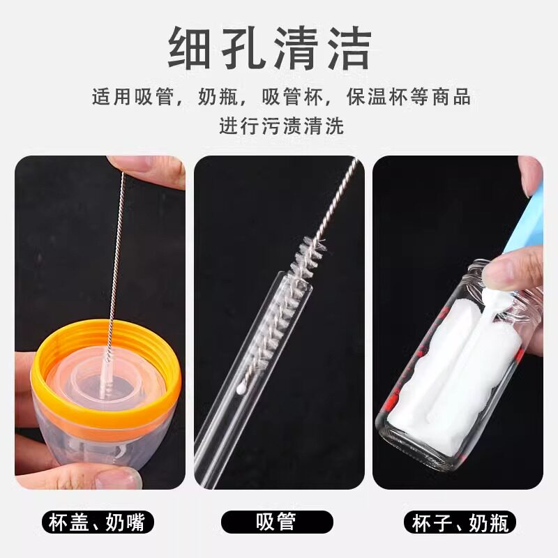 Straw Brush Sponge Baby Bottle Brush Cleaning Brush Set Baby Pacifier Brushed Straw Brush Cup Brush Cleaning Suit-Taobao