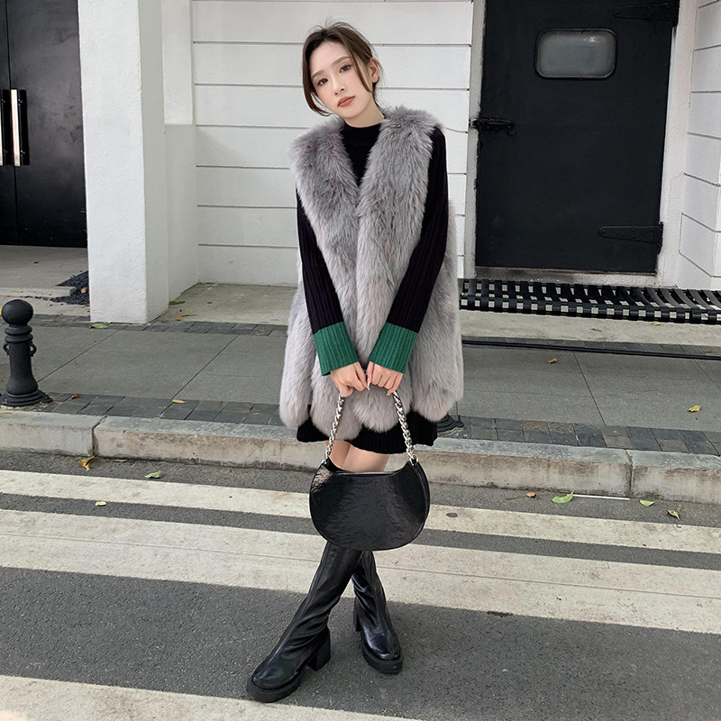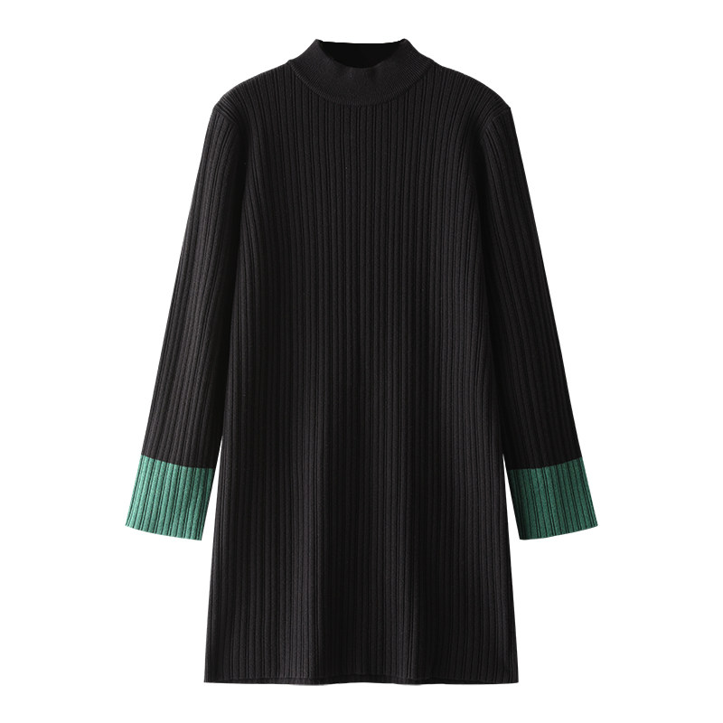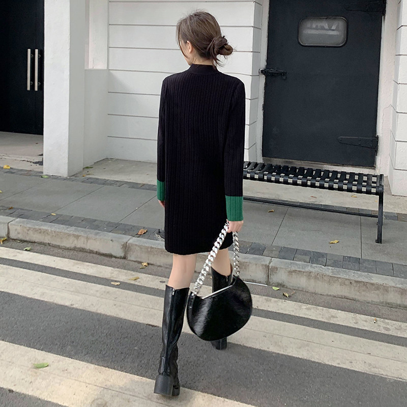 Semi-high collar knit one-piece dress lady autumn and winter hit bottom skirt loose sweater small sub lap in the middle of the sweater dress-Taobao
