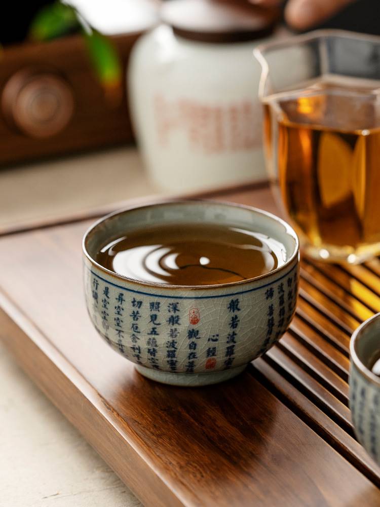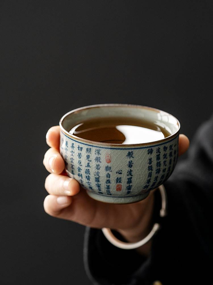 Green flower porcelain wood burning heart warp cup old pottery clay master cup ceramic Deed individual special tea cup single cup of tea drinking cup-Taobao