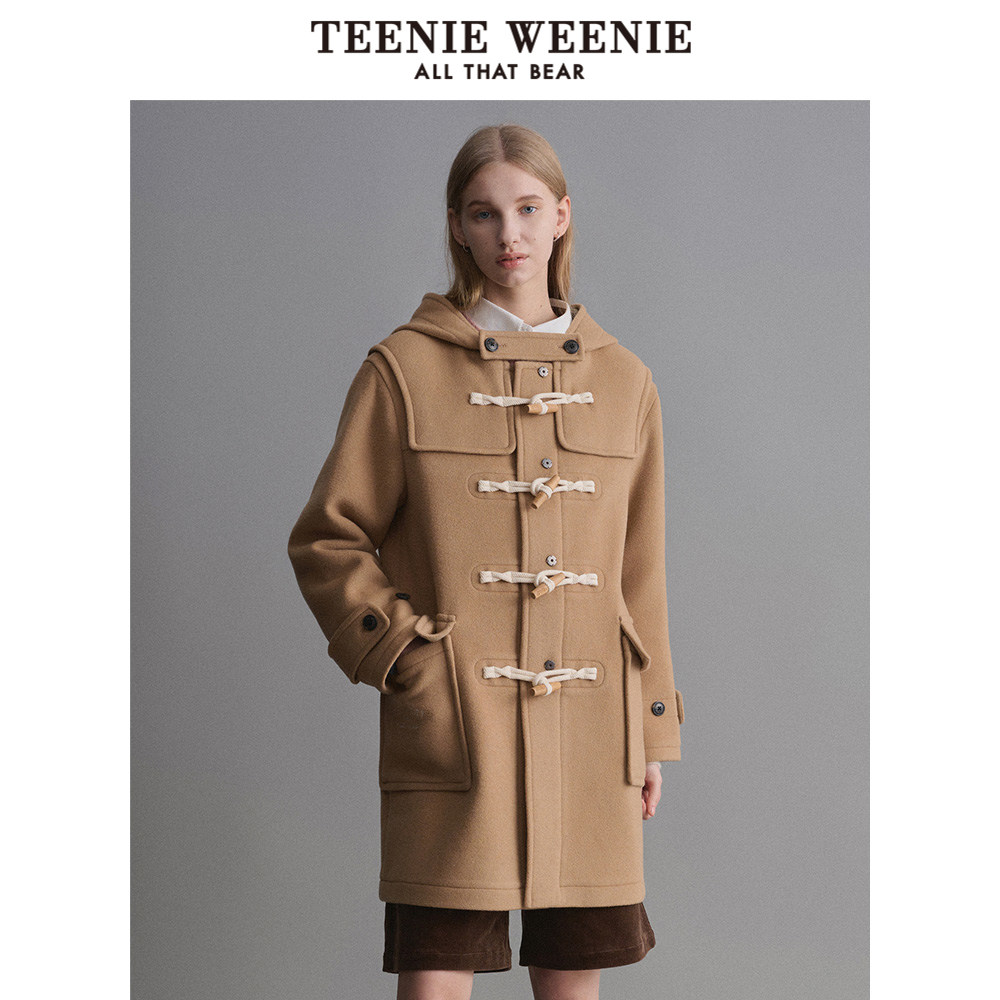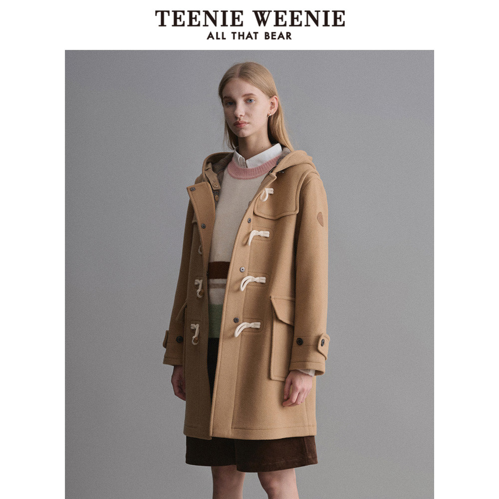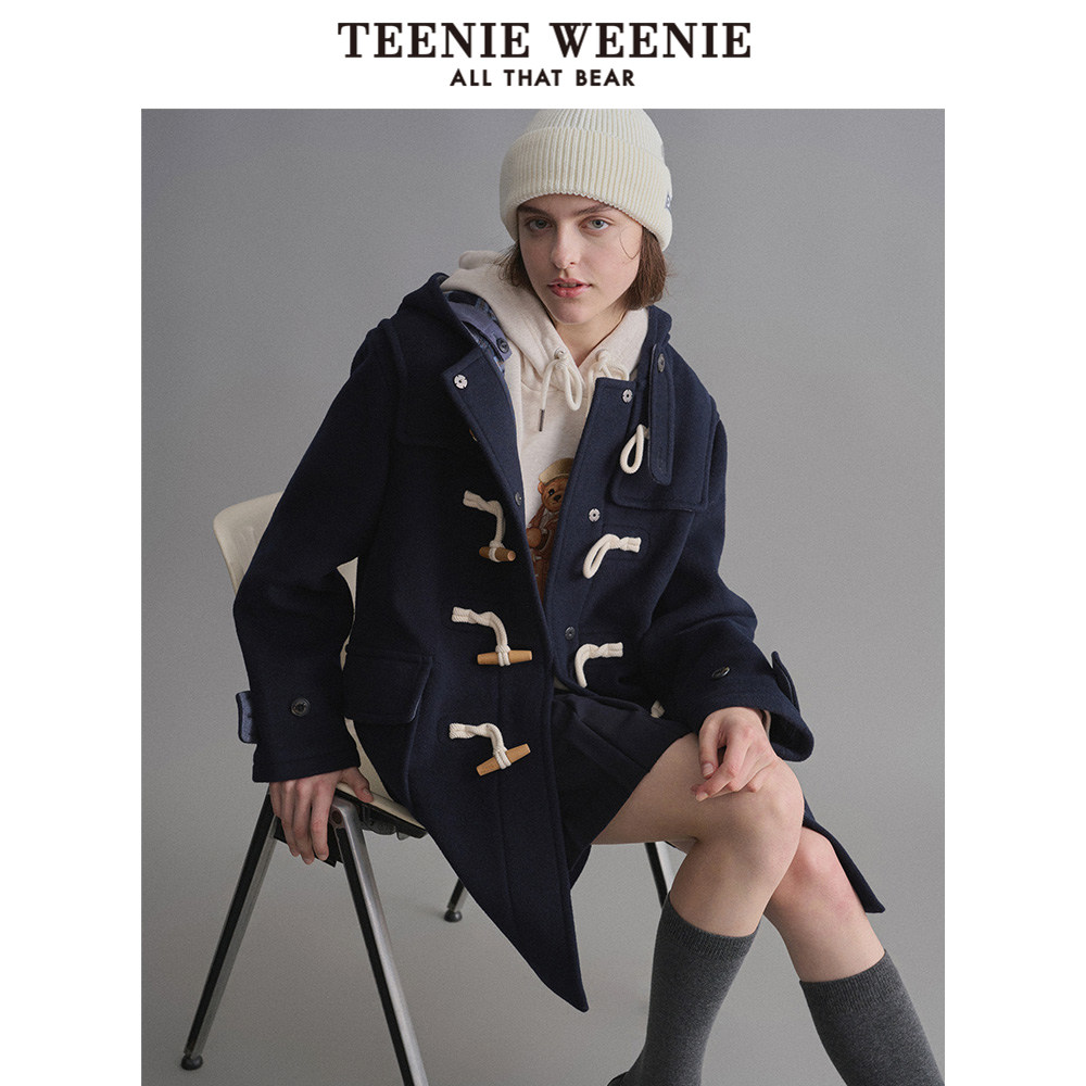 TeenieWeenie small bear 2023 autumn winter new college wind sheep wool blend horns buttoned with fur-Taobao