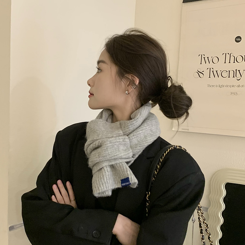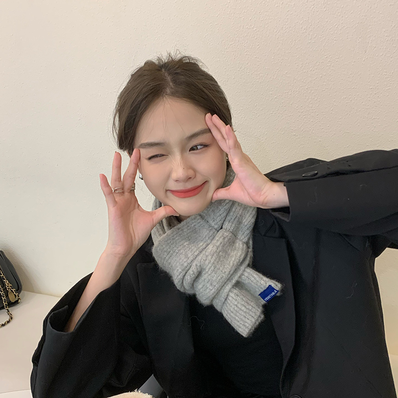 Theory among winter short knitted scarves woman pure color temperament 100 lap cross small scarf Korean version warm-Taobao