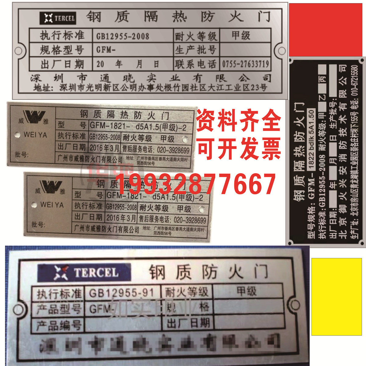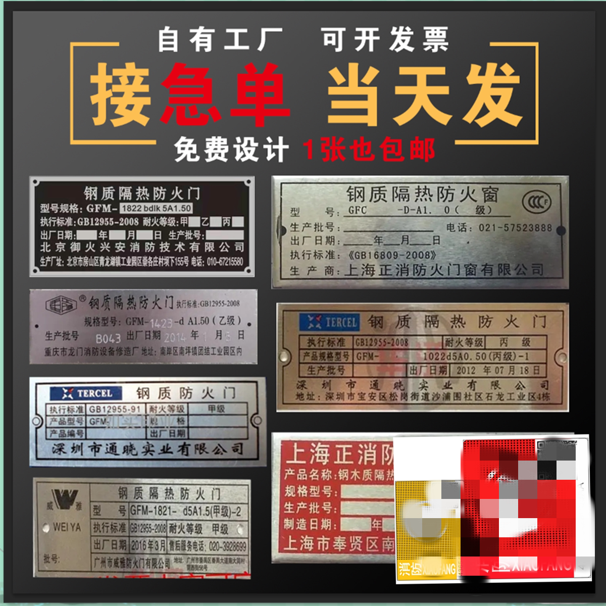 Custom nameplate fireproof roll curtain door marking wooden steel heat insulation fire door A B C class metal aluminium card-Taobao
