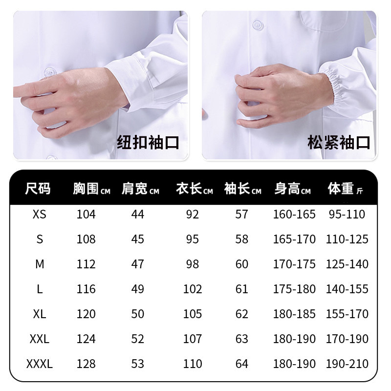 White coat with long sleeves male and female general practitioner physician nurse, medical student workwear laboratory chemistry experimental clothing