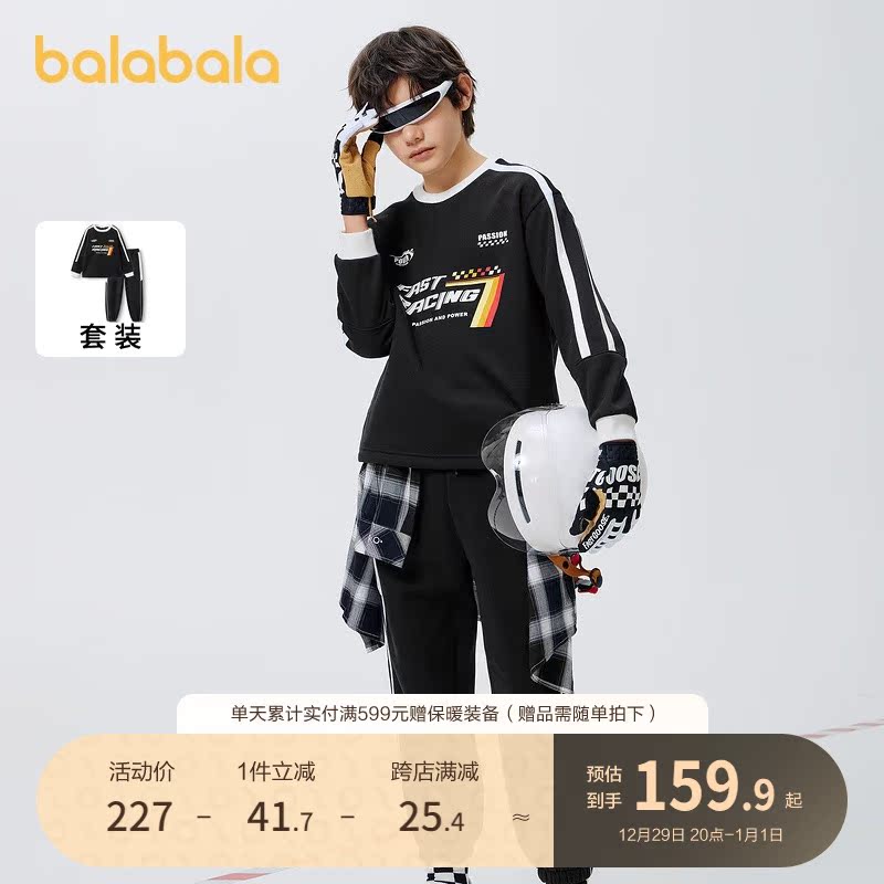 Balabala children's clothes children suit boy 2023 new autumn and winter mid-child letters printed sports suit Chaocool-Taobao