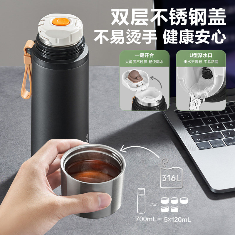 550mL Yaoshi black full steel sharing cover lifting rope (portable accompanying) 550mL cloud cedar green full steel sharing cover lifting rope (portable accompanying) 700mL dazzling black