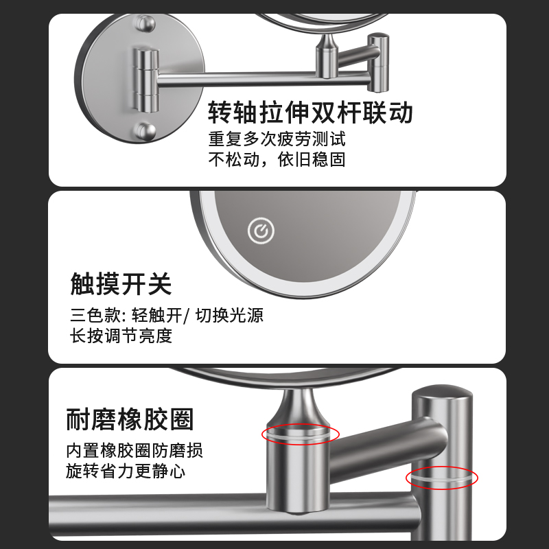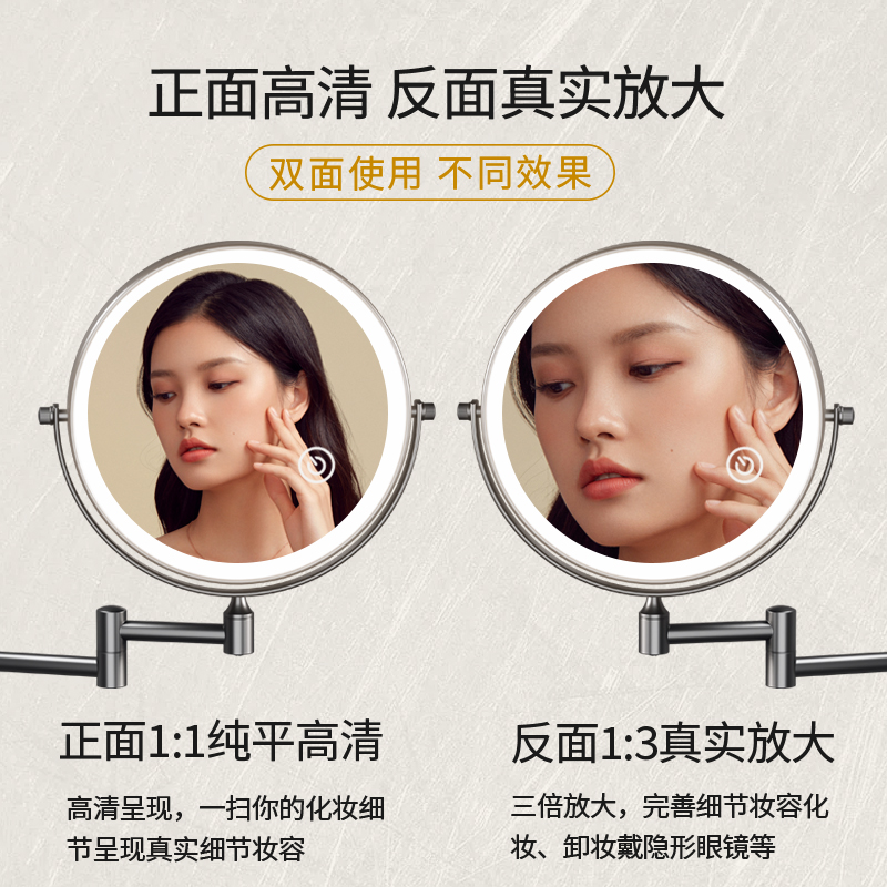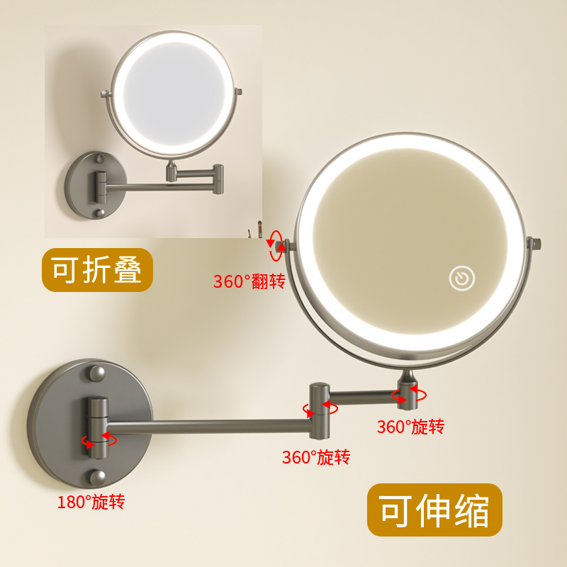 Bathroom make-up mirror led free of punching wall-mounted telescopic folding with lamp mirror toilet bifacial hotel dresser-Taobao