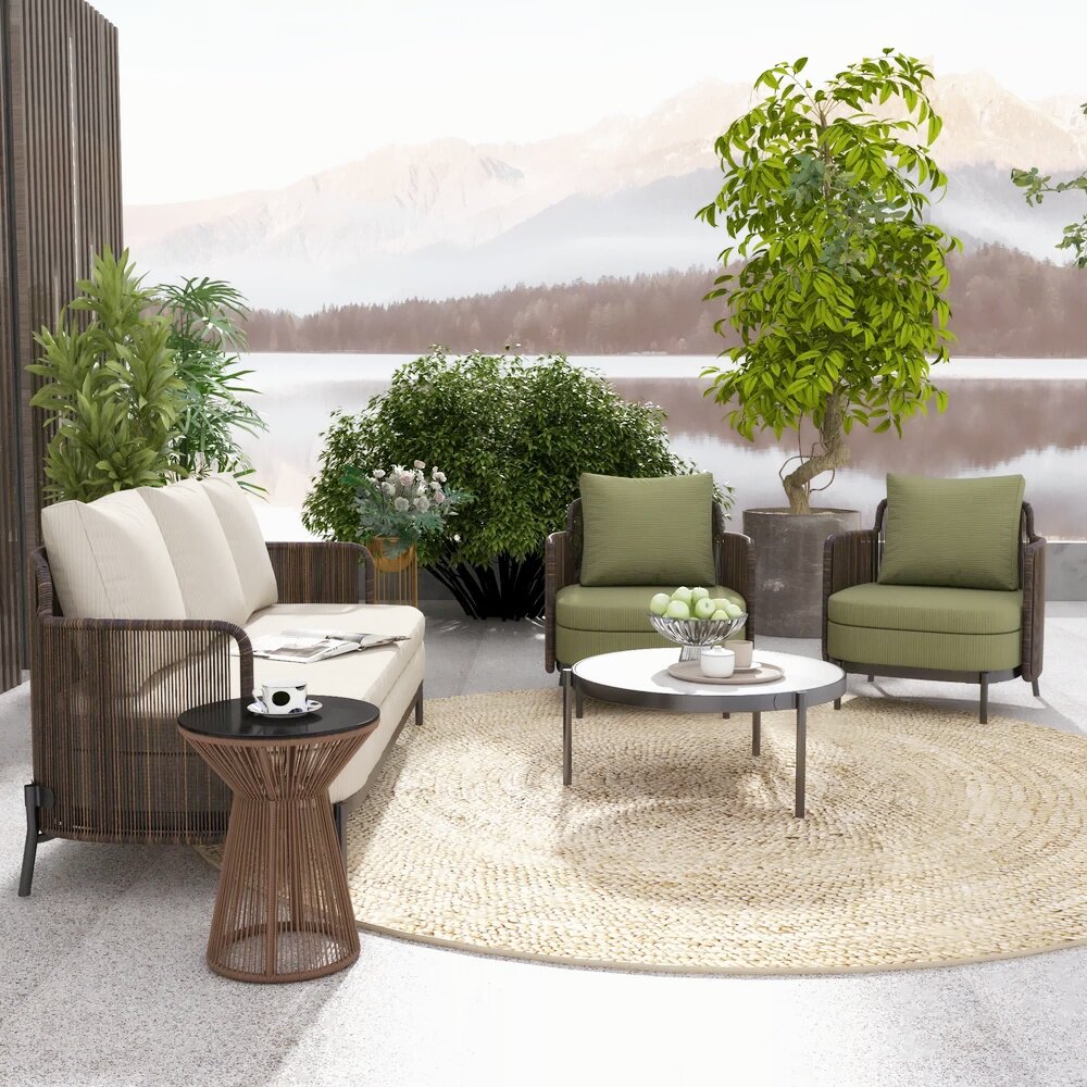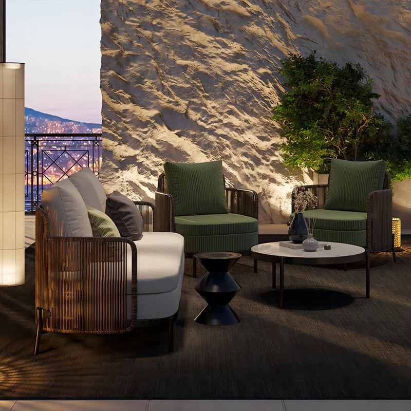 Outdoor Rattan sofa Combined Yangguang Room Courtyard Folk Waterproof Stainless Steel Designer Villa Hotel Furniture-Taobao