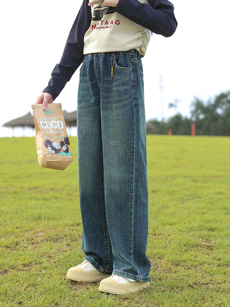 UK next kiss girl girl jeans autumn winter foreign air new CUHK Casual Plus Suede Straight Cylinder Broadleg Pants-Taobao