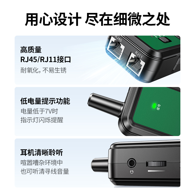 Green Union multifunction network wire tester Finder Network Signal Through Break Detector POE Charged Anti-Interference 60V-Taobao