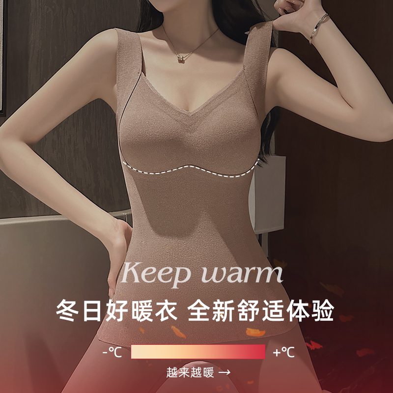 Duvet Warm Vest Women's Underwear Winter With Chest Cushion Plus Suede Thickened Inner Lap Cotton Undershirt Low Collar Autumn Blouse-Taobao