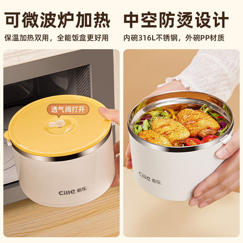 Hile Insulation Lunch Box 316 Stainless Steel Office Worker With Rice Thever Microwave Heating Multilayer Dining Box Lunch Box Barrel-Taobao