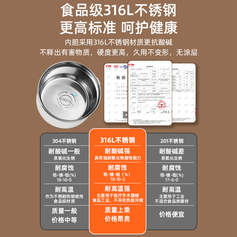 (316L stainless steel) monolayer 1000ml (316L stainless steel) Double layer 1700ml (316L stainless steel) Three layers 2400ml (316L No