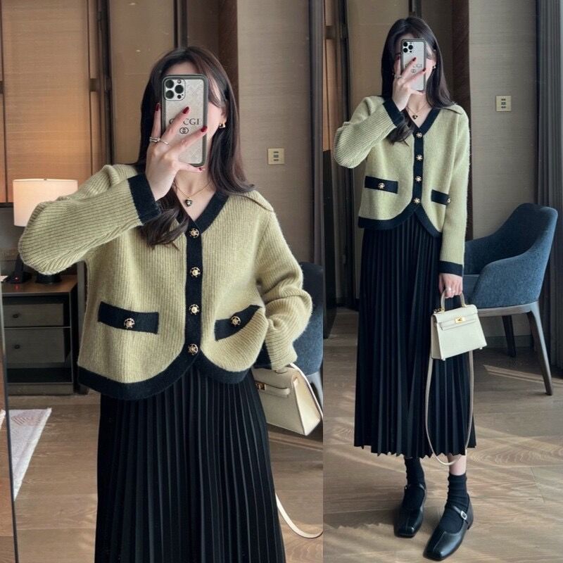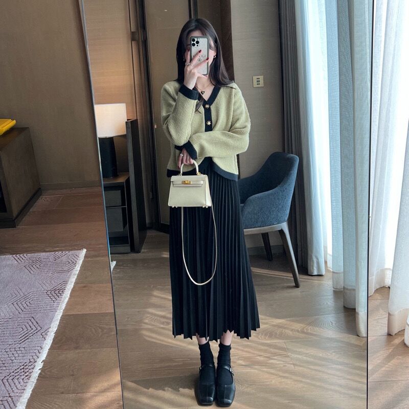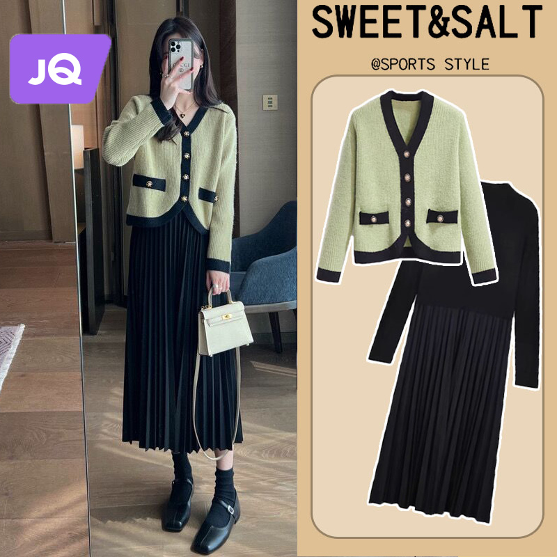 The Jing Kiri Gestational Woman Dress Autumn Clothing Suit Small Scents Knitted Blouse Jacket Black Tandem Dress Long Sleeve Autumn Winter Two Sets-Taobao