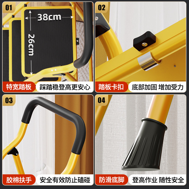 Ladder Home Interior Folding Stairs Versatile Thickened Herringbone Ladder Telescopic Climbing Ladder Climbing Ladder Climbing with a four-step escalator-Taobao