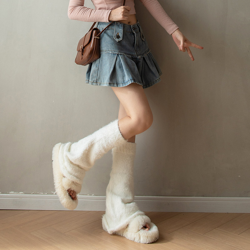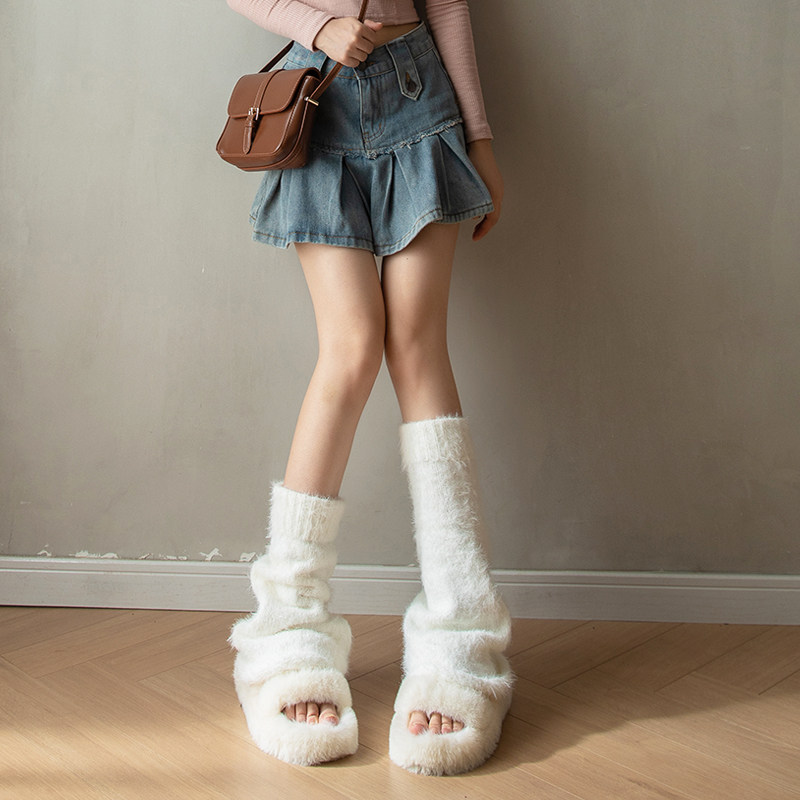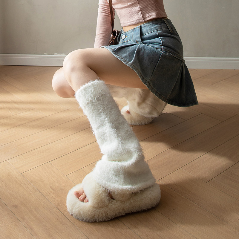 Autumn-winter white imitation ferret hair wool yarn plush leg sleeve pure desire windy day series Conspiculy Warm Socks Hot Brother-in-law y2k-Taobao