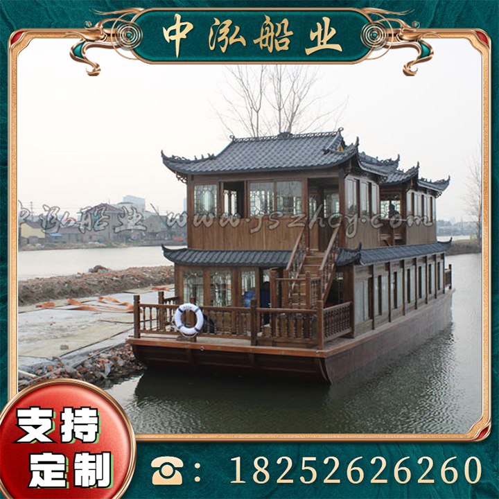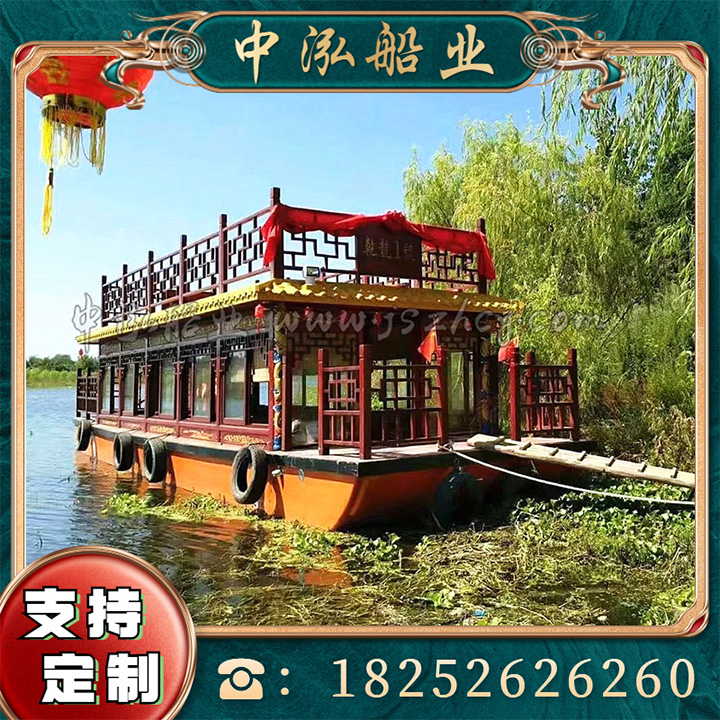 Wooden boat Large solid wood bilayer painting Boat Boat Retro Scenic Area Sightseeing Tourism Water Electric Catering GRP House Ship-Taobao