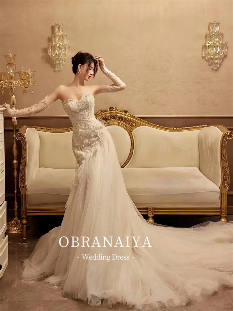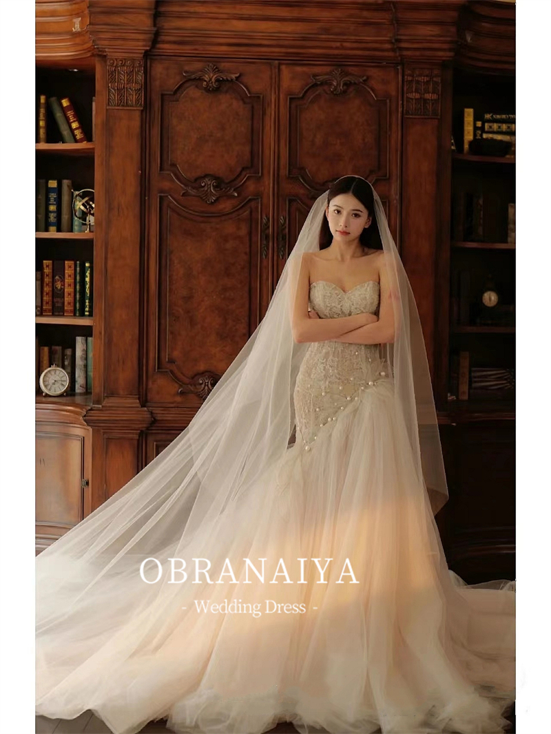 Fishtail Light Wedding Dresses Bridal 2023 New Meritocracy Main Wedding Veil long sleeves Two out of door veil Long trailing-Taobao