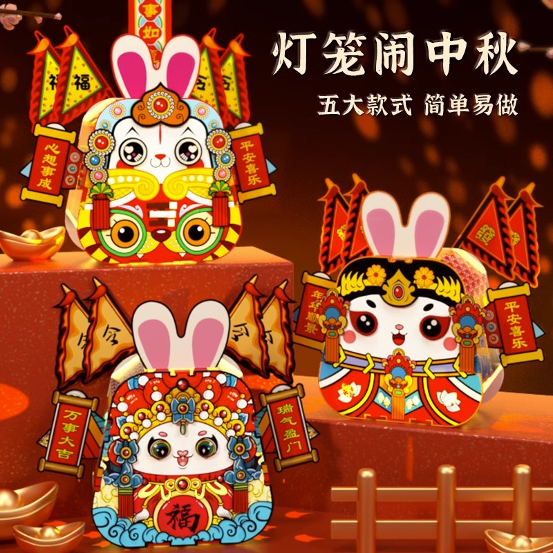 Guochao lantern (full set of five super-valued clothes) DIY projection light national tide lantern (flower Rabbit) DIY projection light national tide lantern (Wu to take the rabbit) DIY projection light national tide lantern (