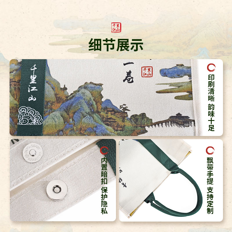 Thousands of miles in Qianshan Fan Bu Guofeng Large capacity Handbags students carrying books Environmental protection shopping bags Canvas Bags Custom-Taobao