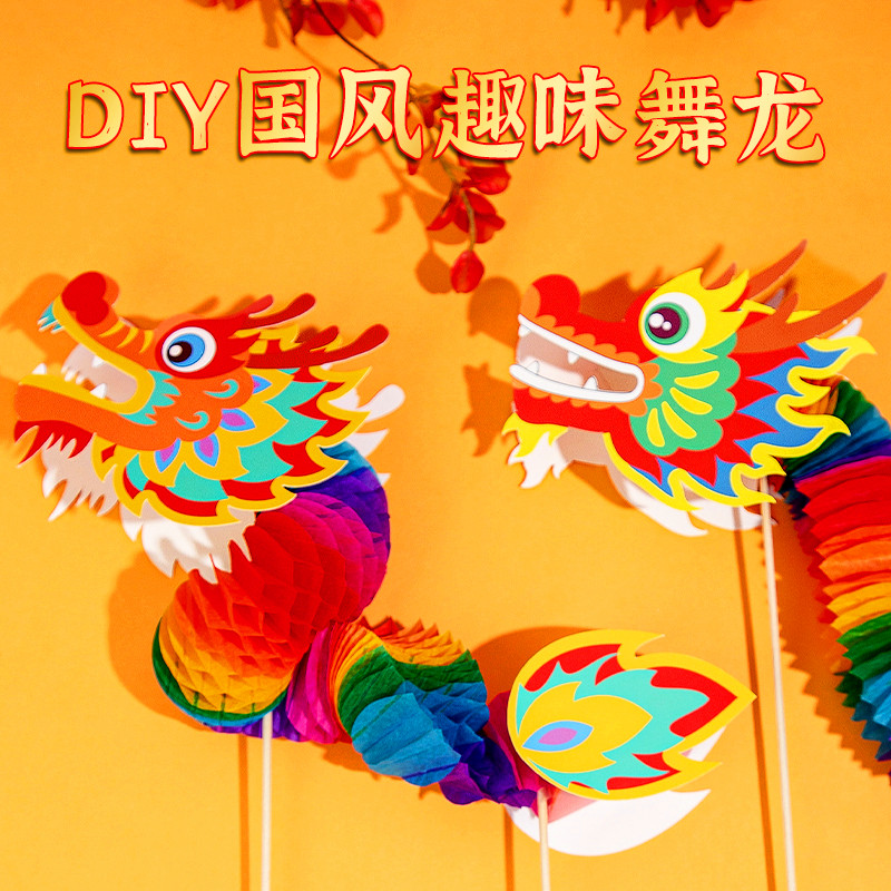 New Year's Day New Year's Day Artisanal Diydance Dragon Kindergarten Children's Traditional Culture National Tide Paper Dragon Making Material Bag Toys-Taobao