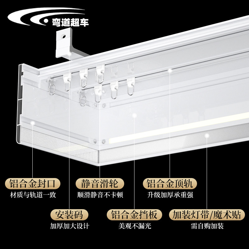 Aluminium alloy curtain track Curtain Box Track integrated sheltering single double track mute rail L Type U slide rail slide-Taobao