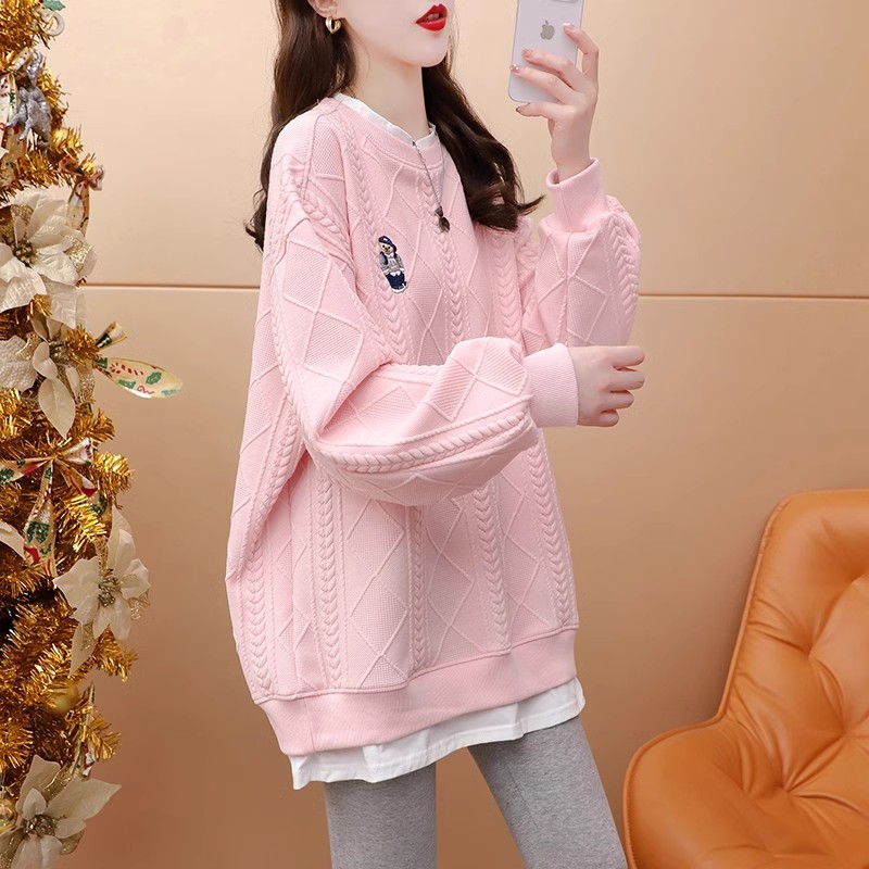 Pregnant women's autumn dress Long sleeves Fashion easing fake Two necroses 2023 mid-fall foreign air Aging Nets Red Blouses-Taobao