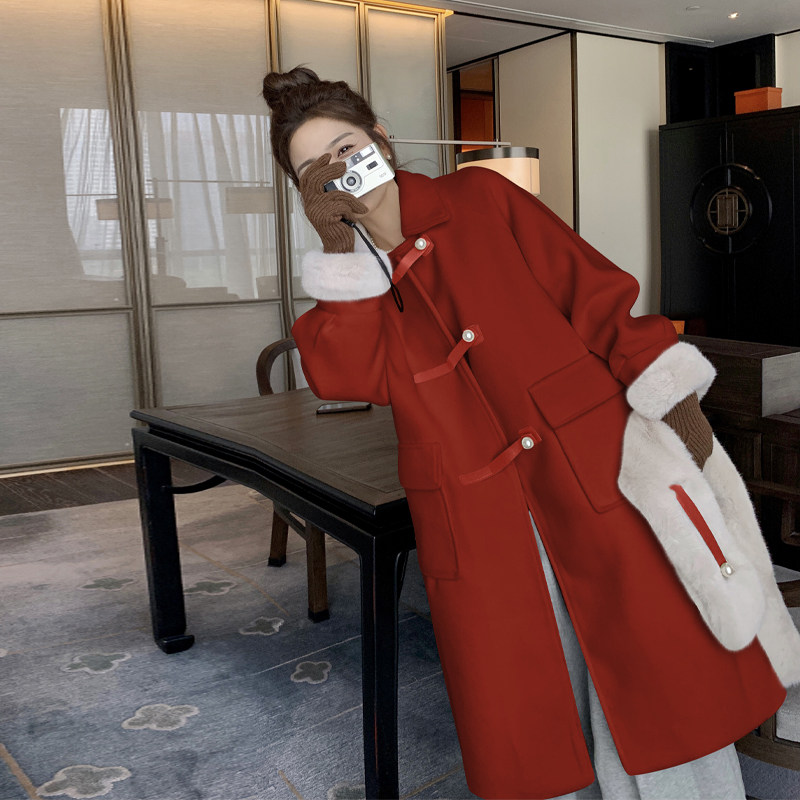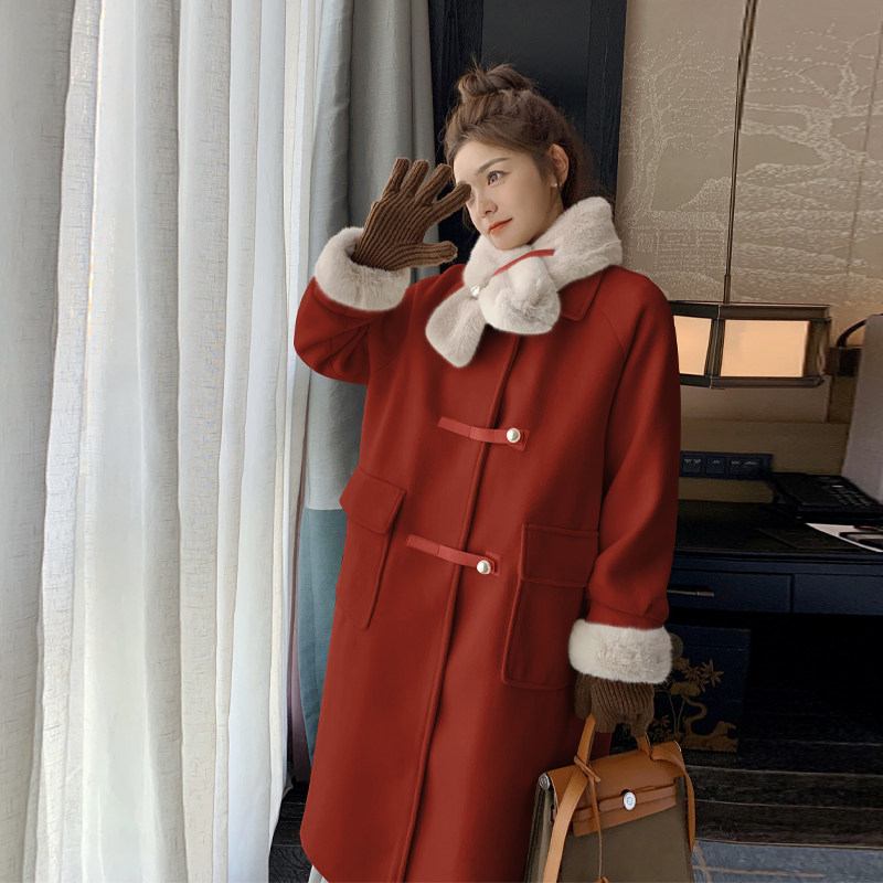 Advanced sensation red fur coats female winter new middle and long style palate with Korean teas loose and thickened with velvety coat-Taobao