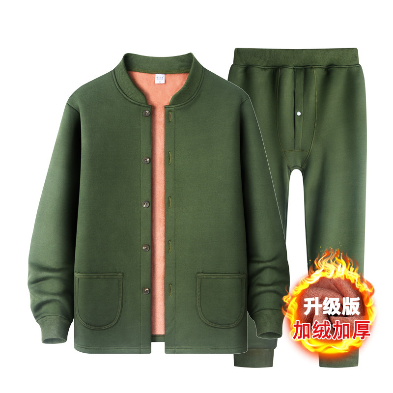 Gushed thickened thermal underwear suit Male middle aged anti-cold warm clothes Dad cardiff cotton clothes Grandpa Autumn Clothes Pants-Taobao