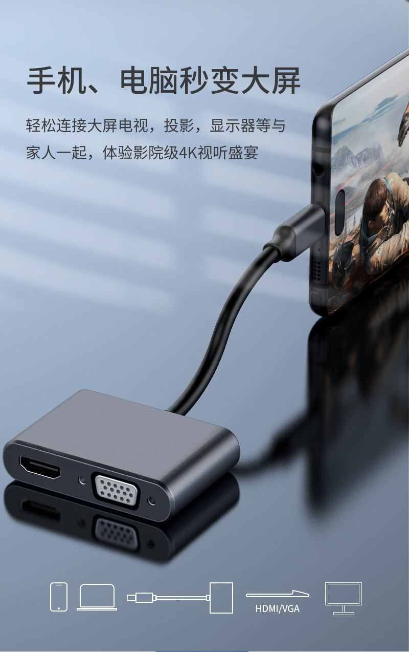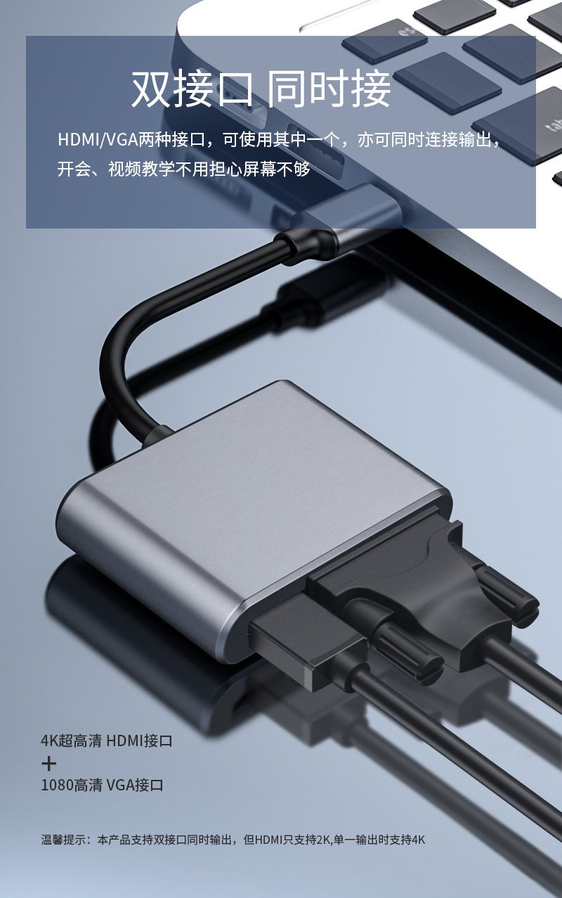Type-C transfer VGA (aluminum alloy version) silver color type-C turn HDMI (ABS version) black type-C turn HDMI (aluminum alloy version) silver T