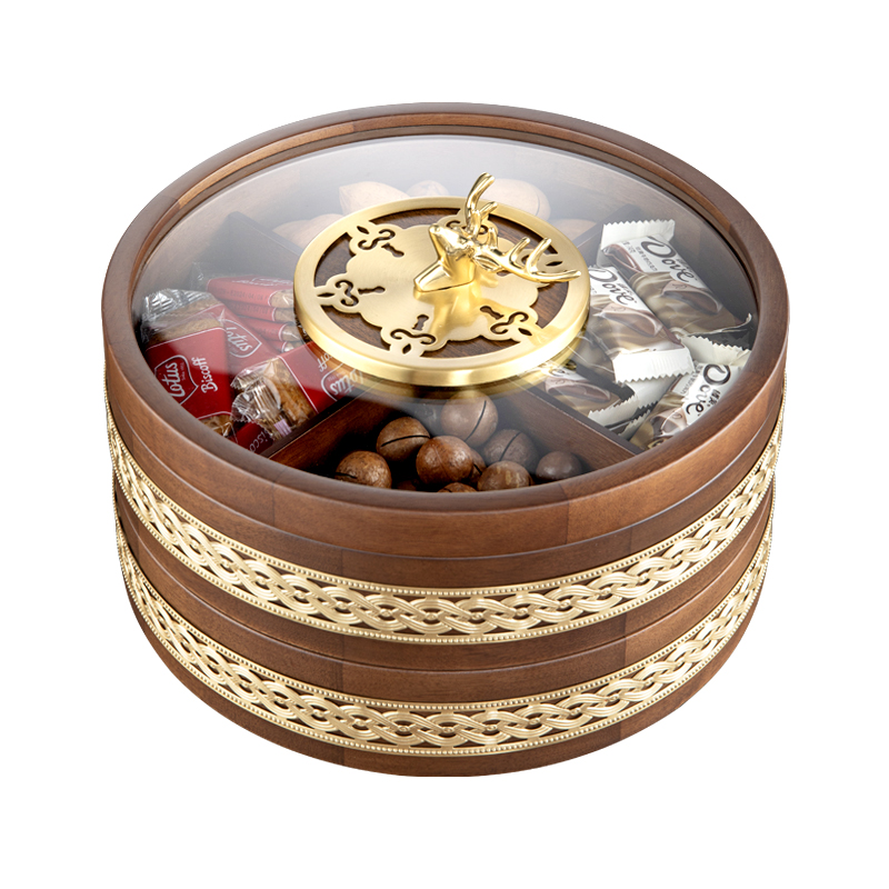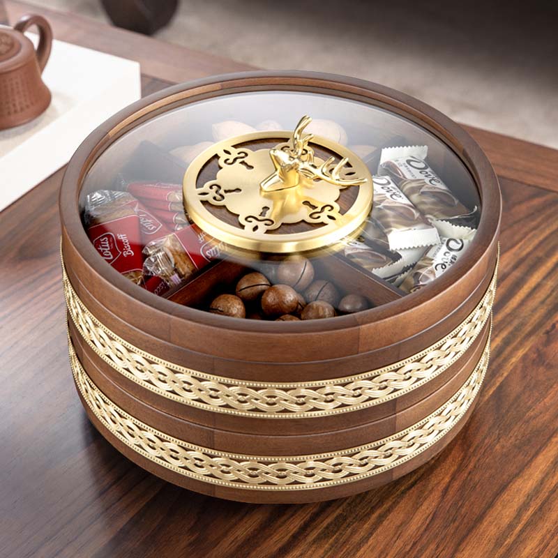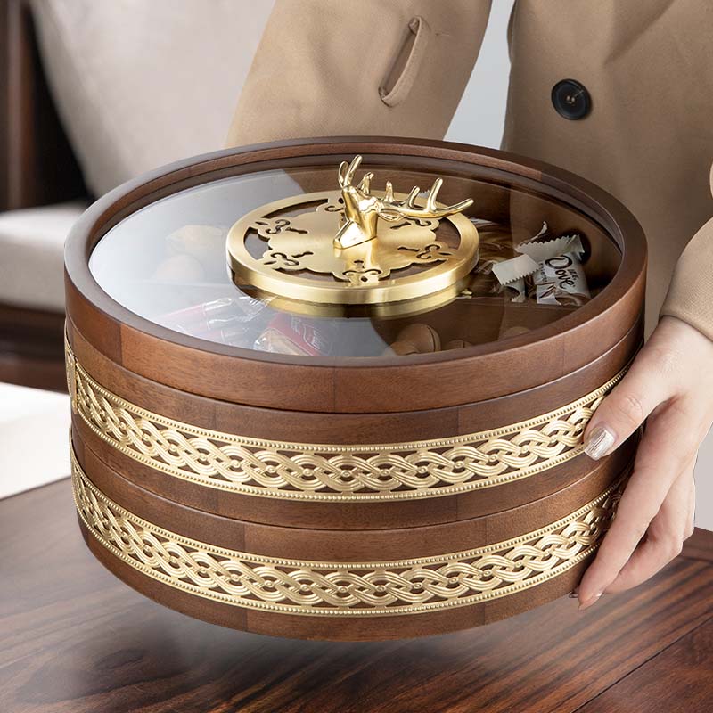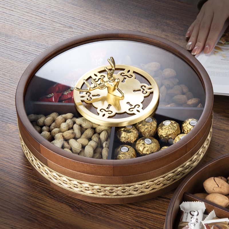 Chinese style fruit tray home living room tea table solid wood fruit box dried fruit containing box nut snacks box light and luxurious atmosphere-Taobao