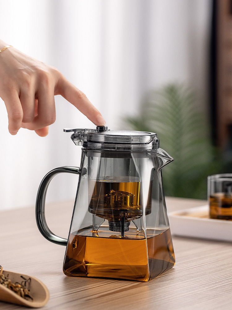 Thickened Smoke Grey Fluff Cup One Key Automatic Outlet Teapot Heat Resistant Glass Home Bubble Teapot Punch Tea Suit-Taobao