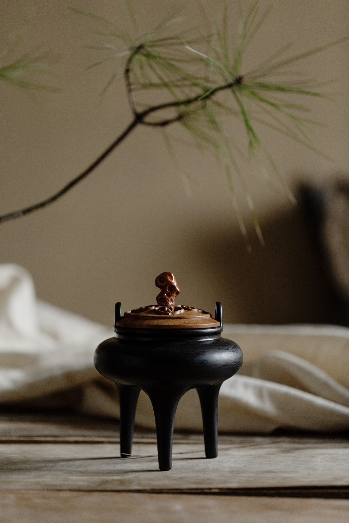 Sanskrit tea College Furnace Matter Incense Stove Triple Foot Wood Lid Home Indoor Sink sandalwood Incense Pan Fragrant Stove-Taobao